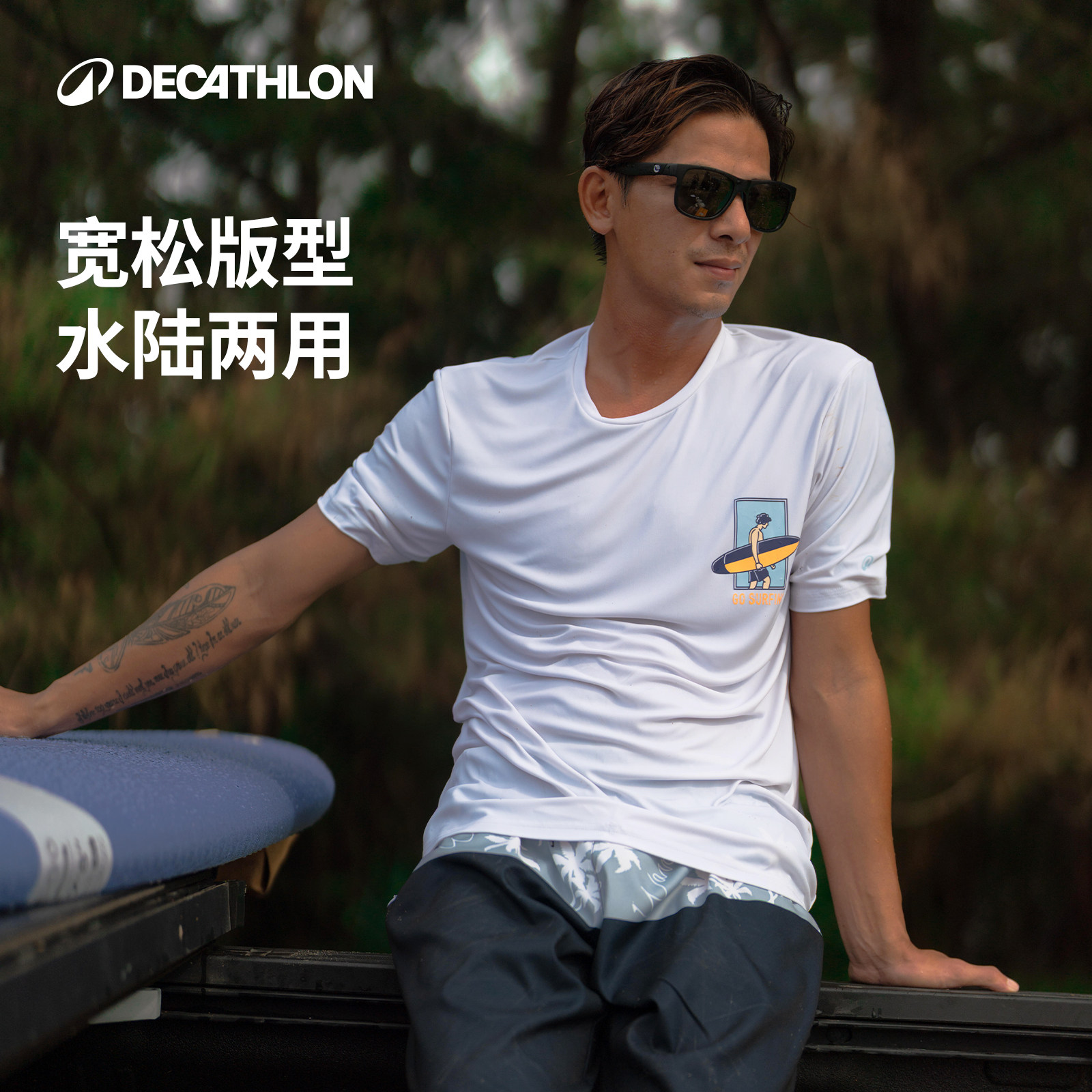 迪卡侬男士泳衣短袖游泳衣防晒速干T恤男冲浪服海边沙滩IVK1