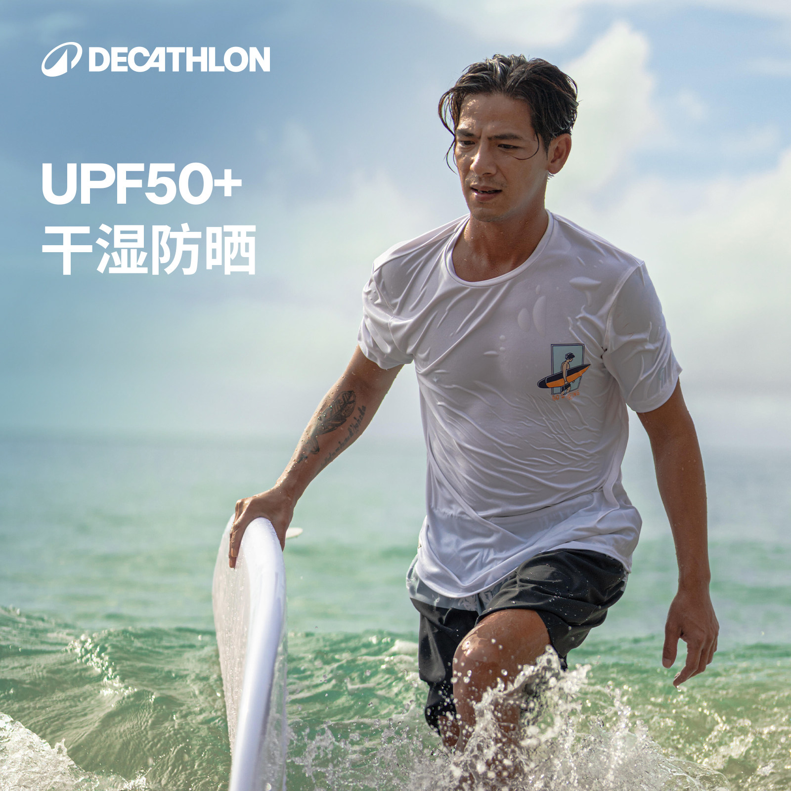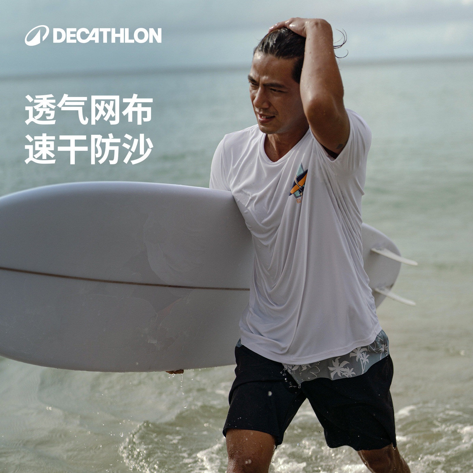 迪卡侬速干透气防晒情侣T恤