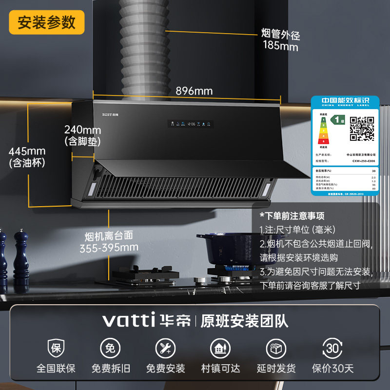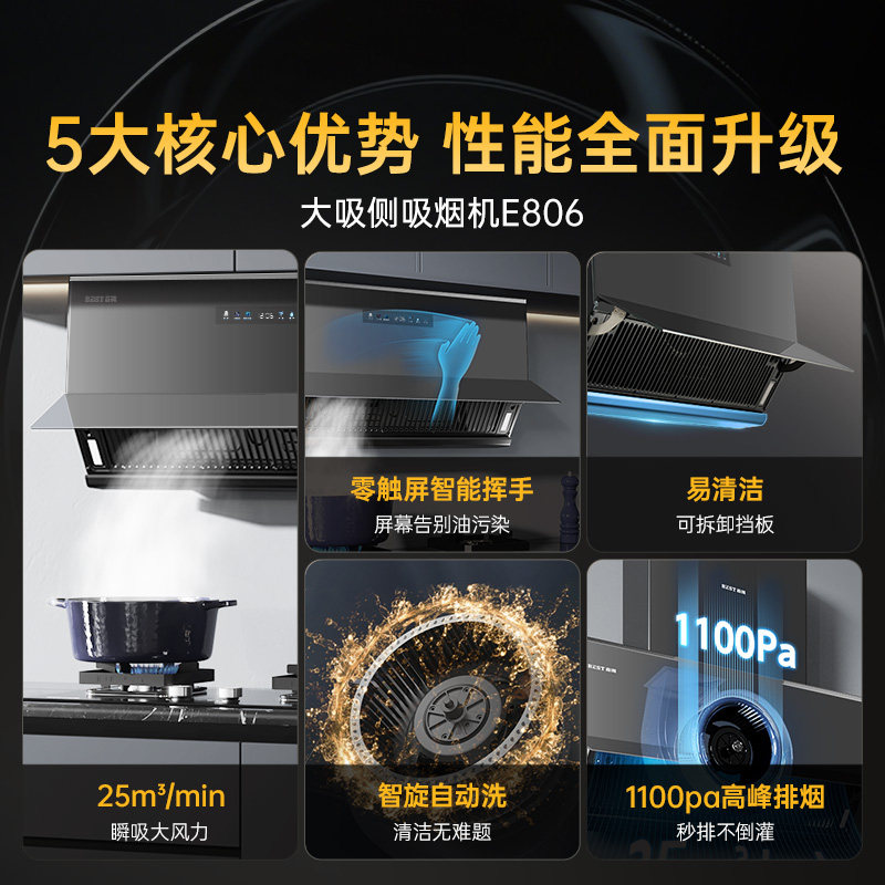 华帝百得抽油烟机家用顶侧双吸变频大吸力油烟机智能烟灶联动E806