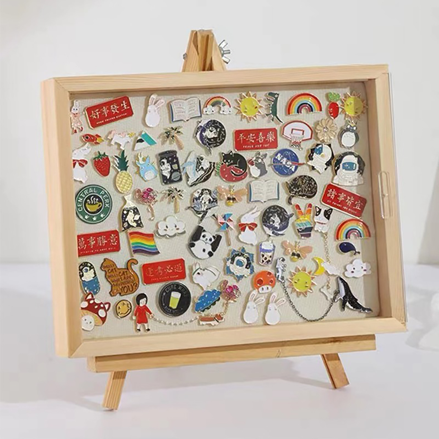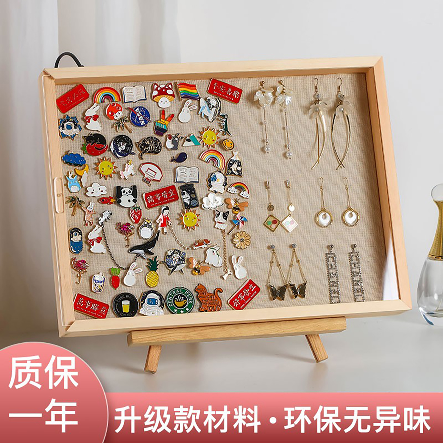 实木徽章相框勋章奖牌收纳盒防氧化胸针首饰品展示架耳环项链挂板