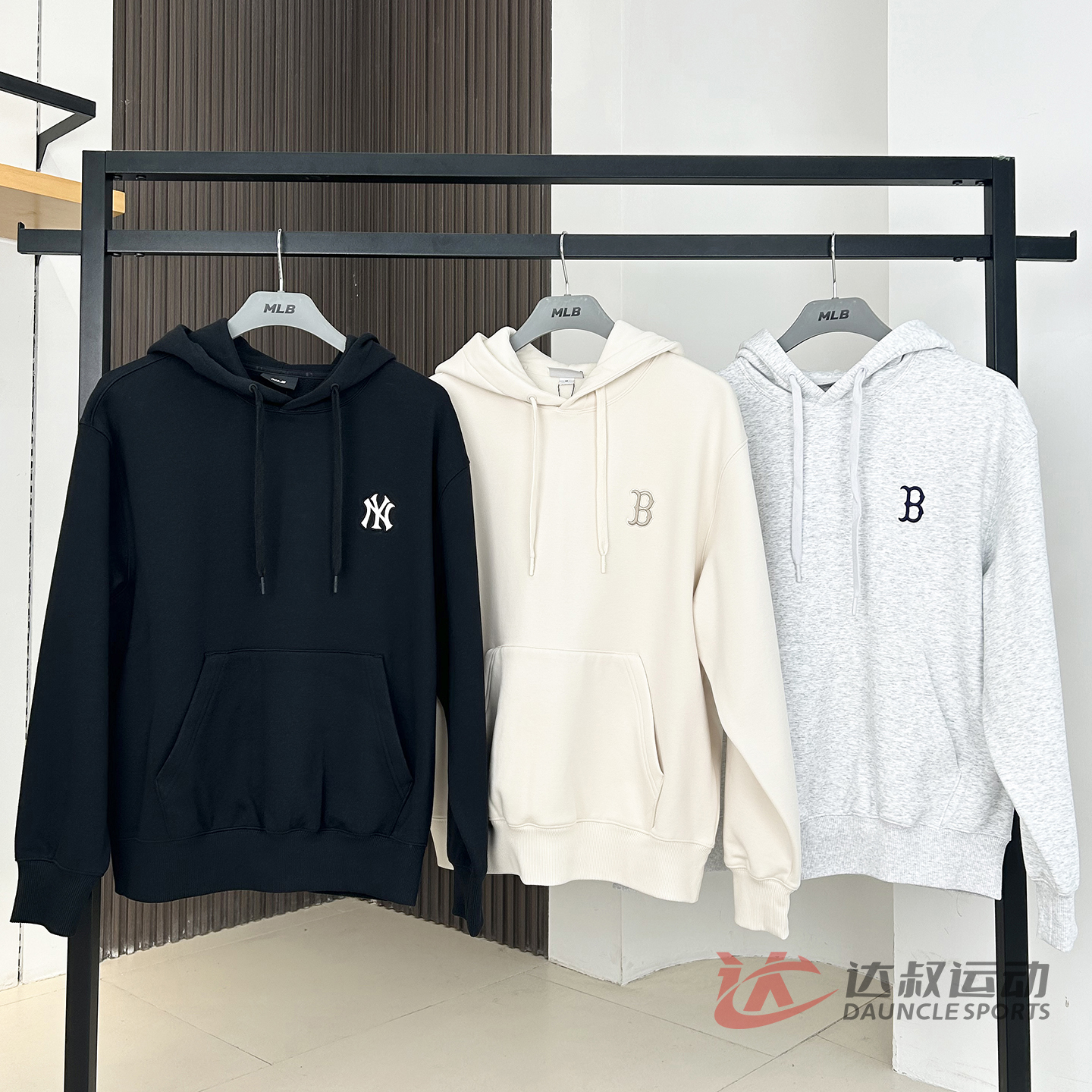 25新款MLB情侣卫衣男女NY大标印花加绒连帽运动套头衫3AHDB0756