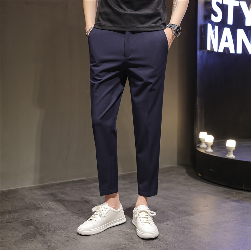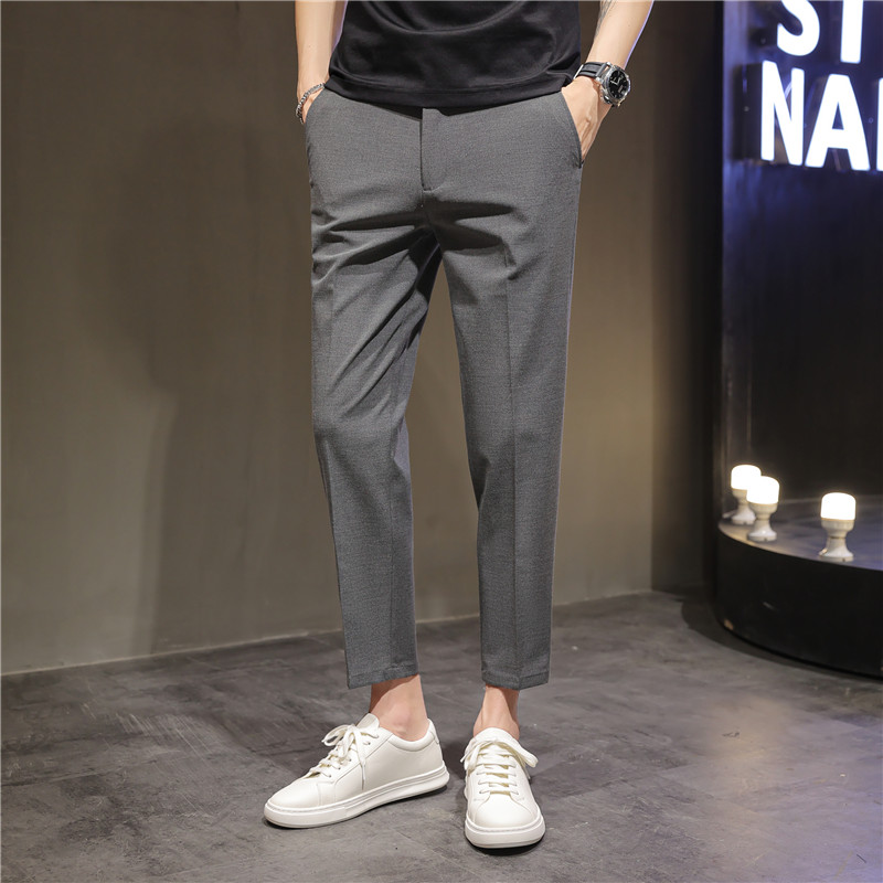 春夏薄款韩版小脚裤灰色休闲裤修身英伦商务男裤男士纯色西裤九分