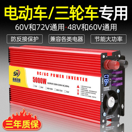 电动车专用逆变器48v60v72v转220V大功率通用电瓶家用电源转换器