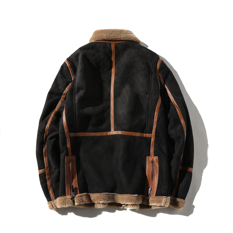 麂皮绒~日系复古!皮毛一体外套男加绒加厚羊羔毛领棉衣休闲夹克