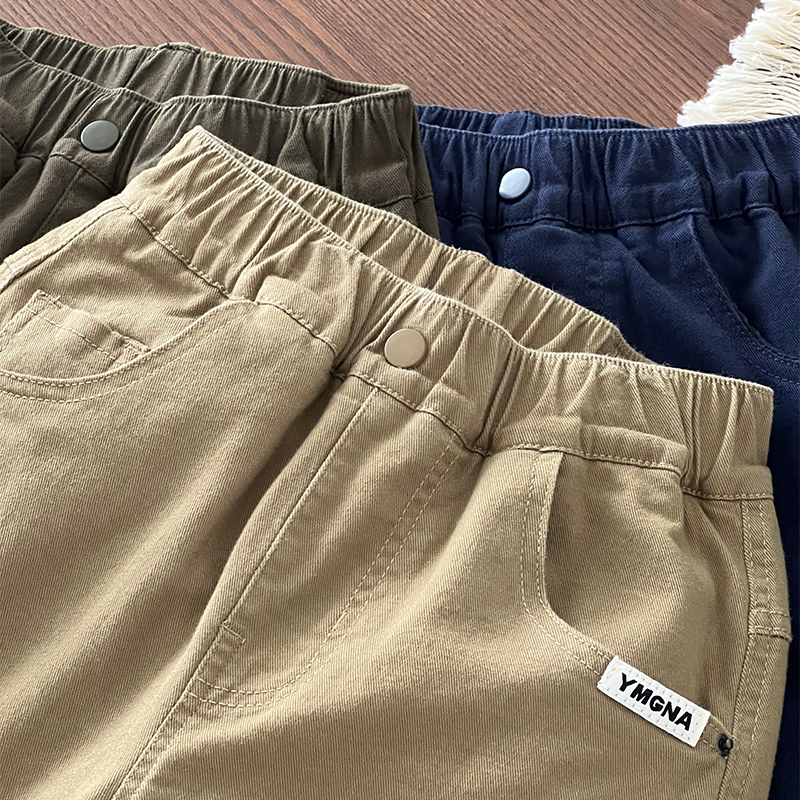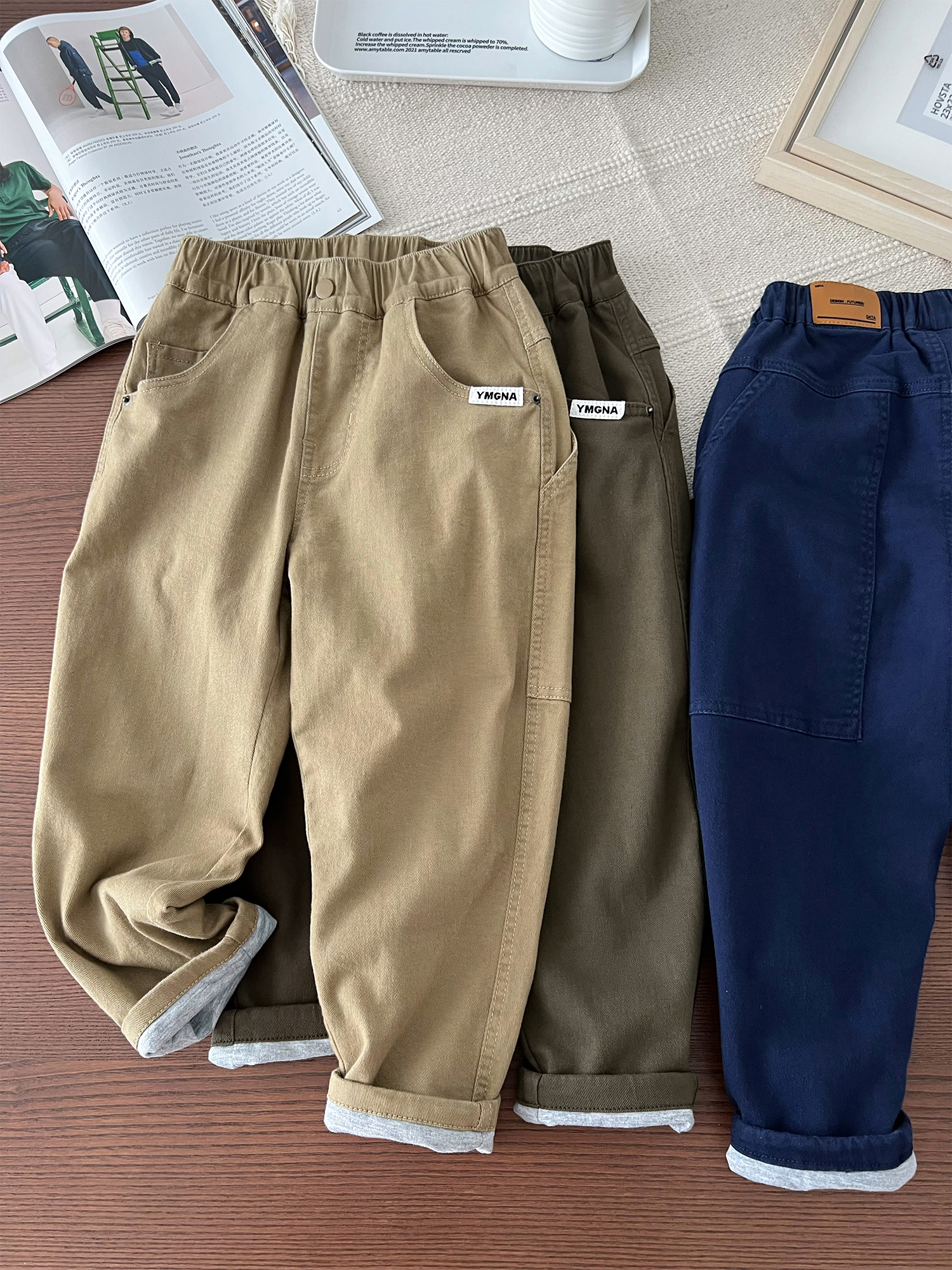 面料厚实保暖 带弹力~秋冬男童双层休闲夹裤中大童直筒加绒长裤子