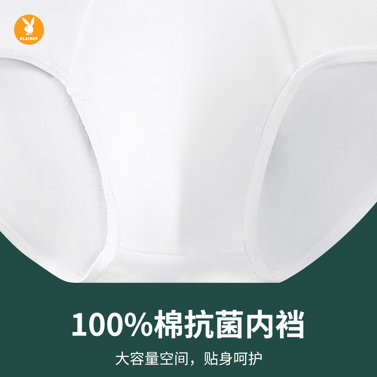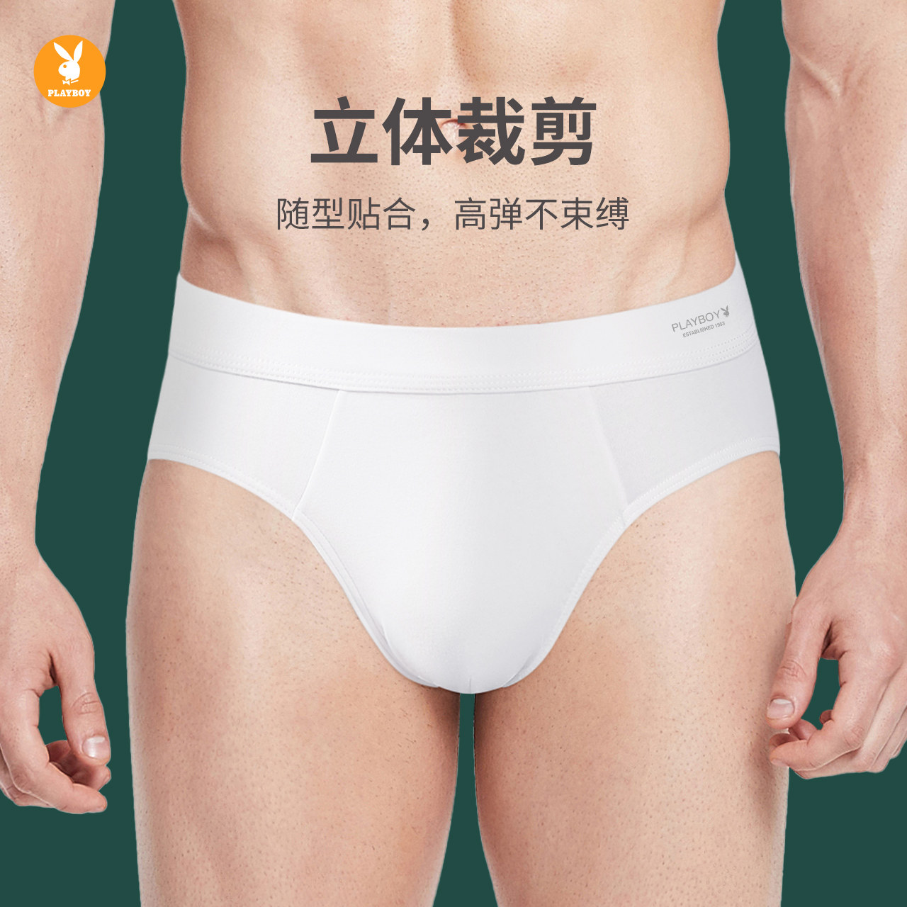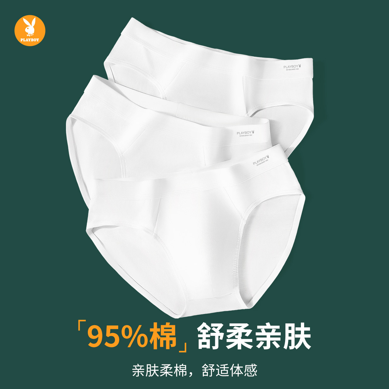 花花公子纯白色男士三角内裤纯棉抗菌裆性感纯色短裤中腰浅色底裤