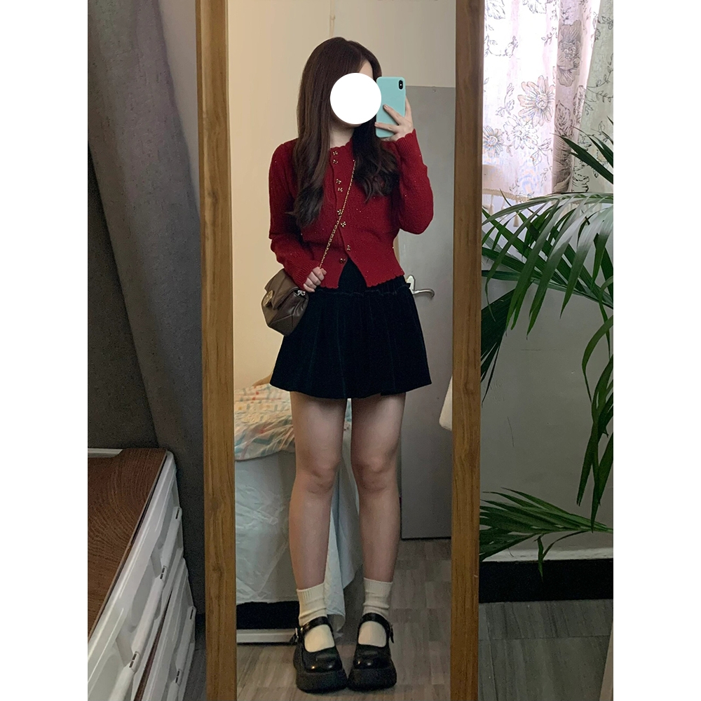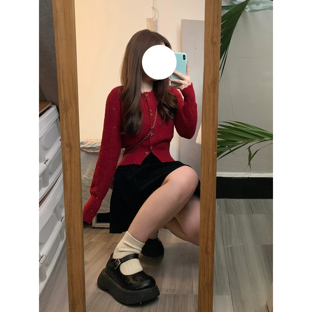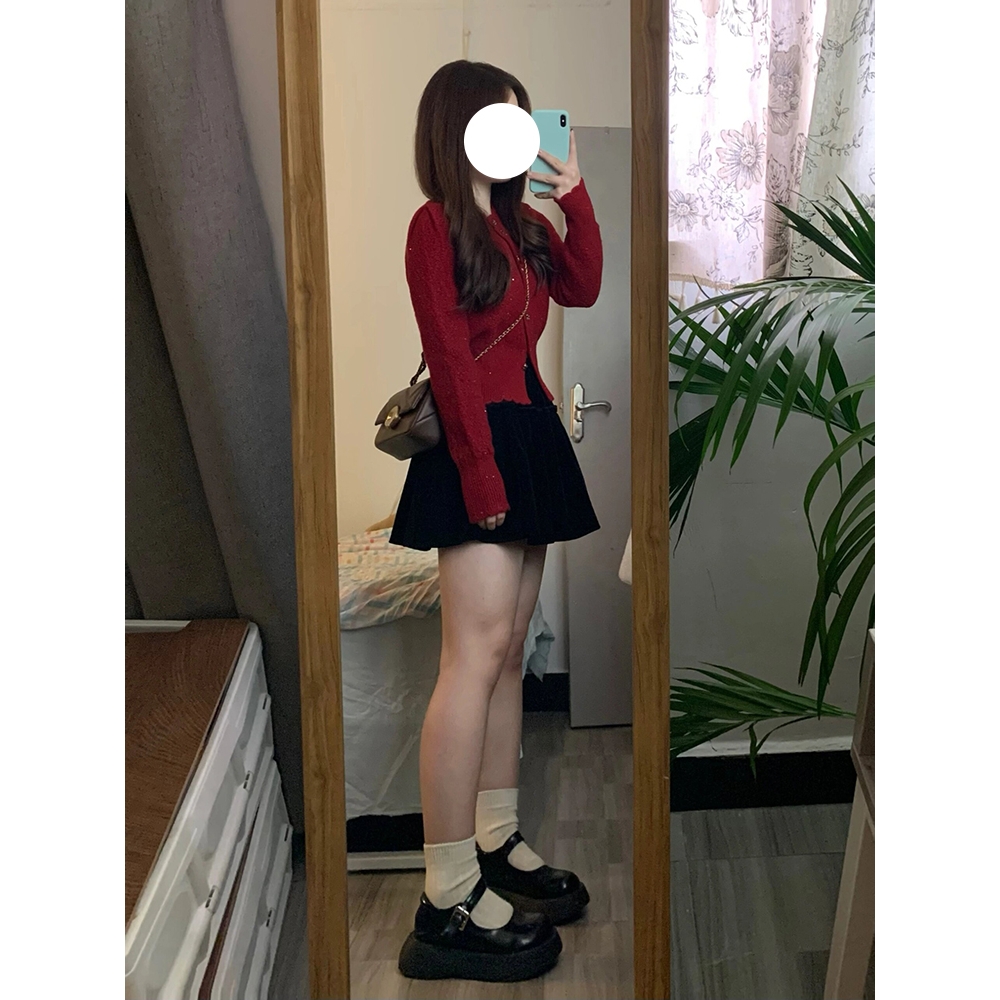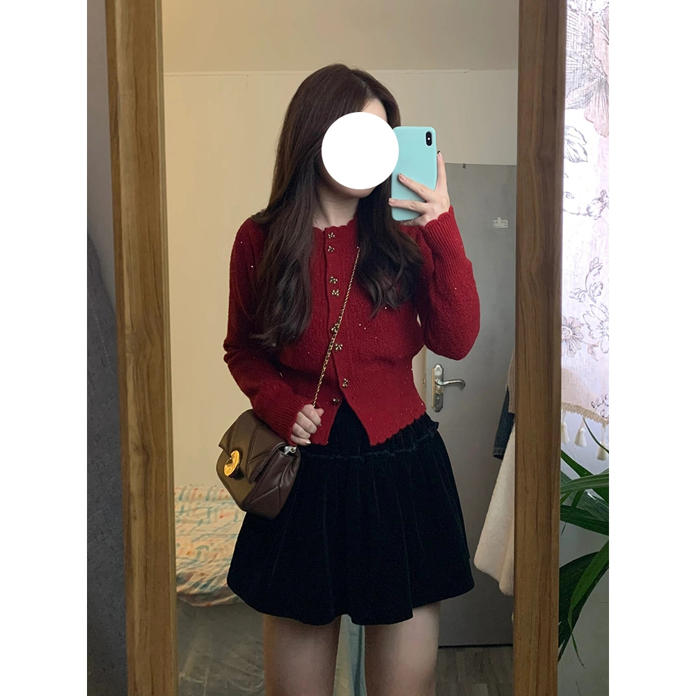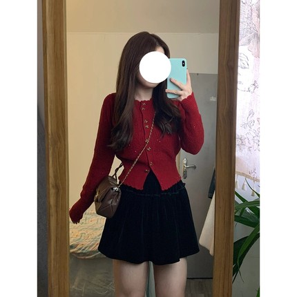 红色毛衣女2025秋冬新年针织开衫独特修身短款小个子内搭上衣外套