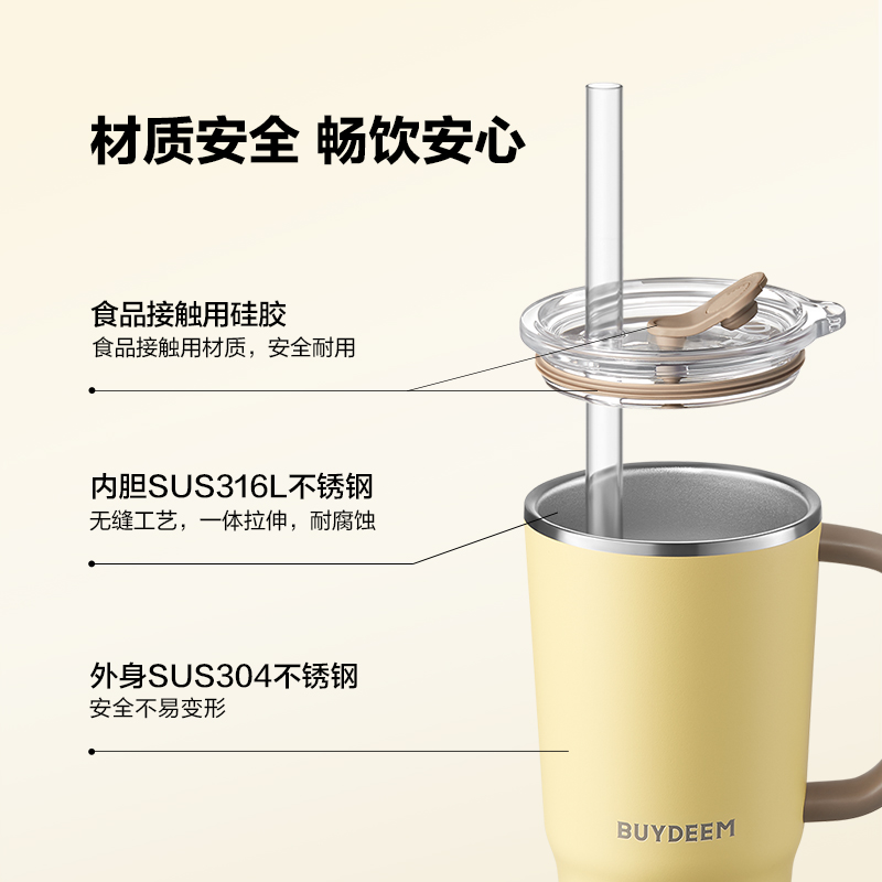 北鼎巨无霸吸管保温杯不锈钢保温杯大容量水杯女保冰吸管杯咖啡杯
