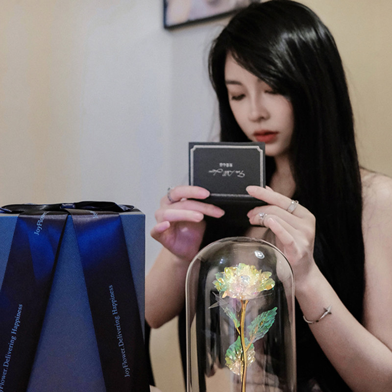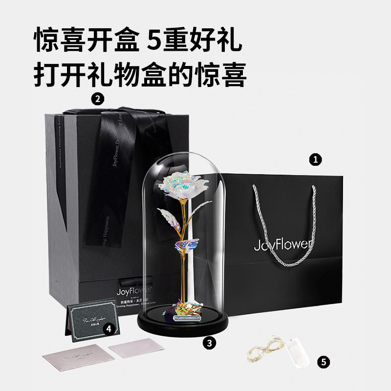 永生花高级感玫瑰金箔花礼盒摆件送女朋友女生圣诞情人节生日礼物