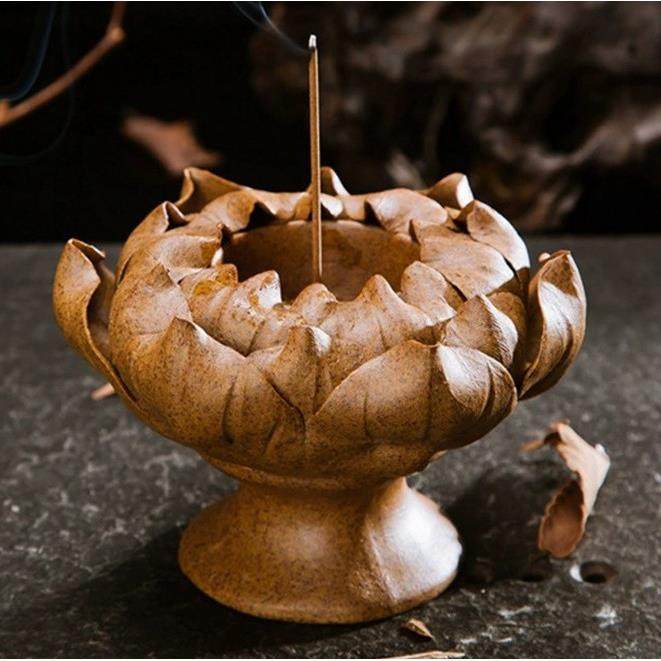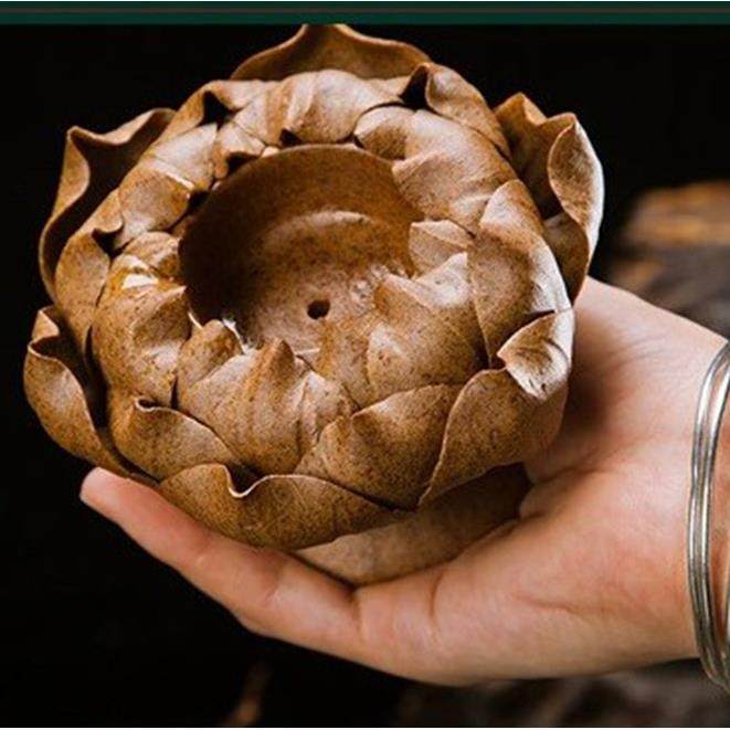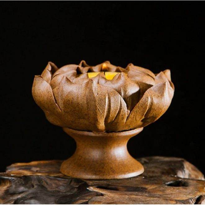 手作莲花蜡烛灯宝莲灯香座香炉手工粗陶泥香插禅意古风陶瓷小摆件