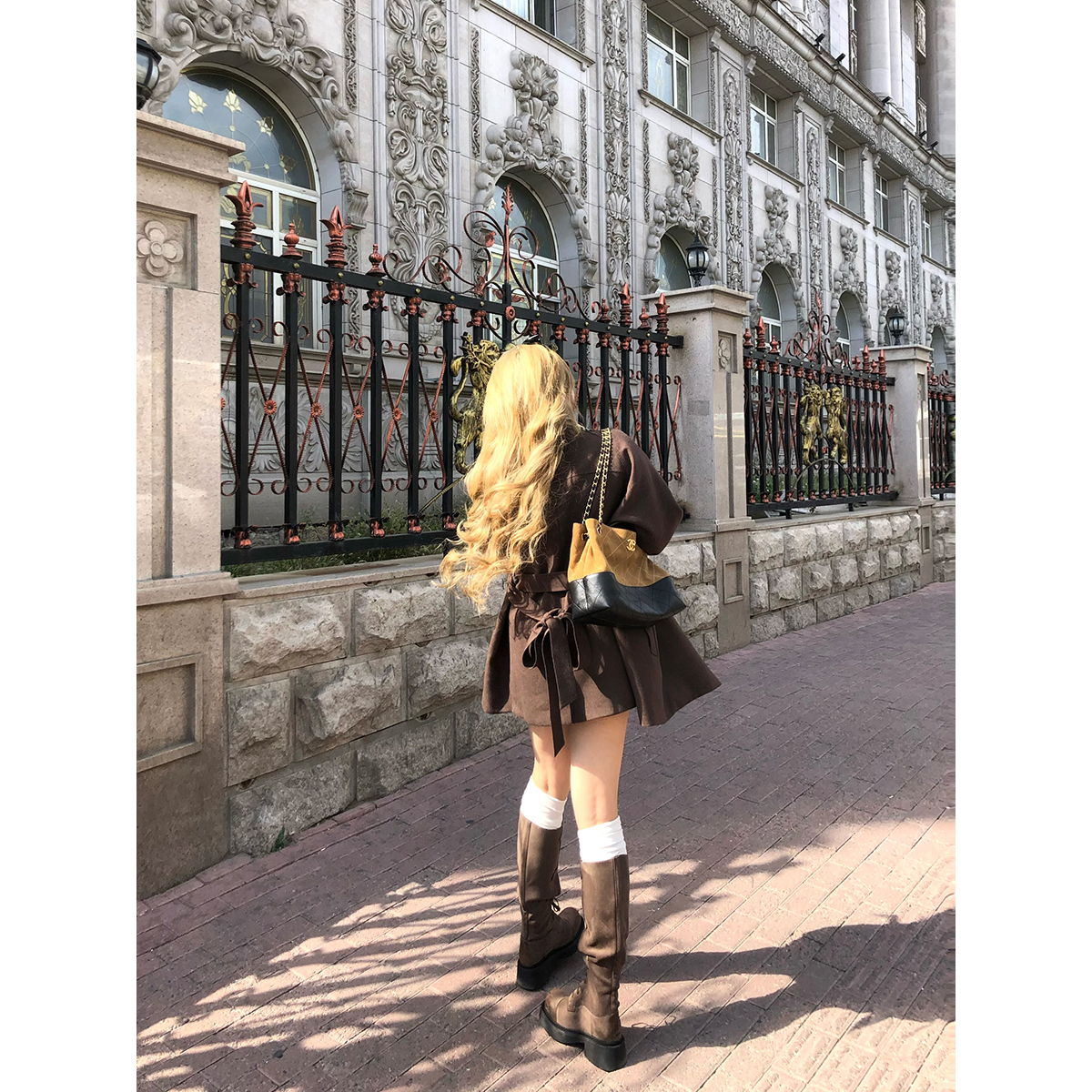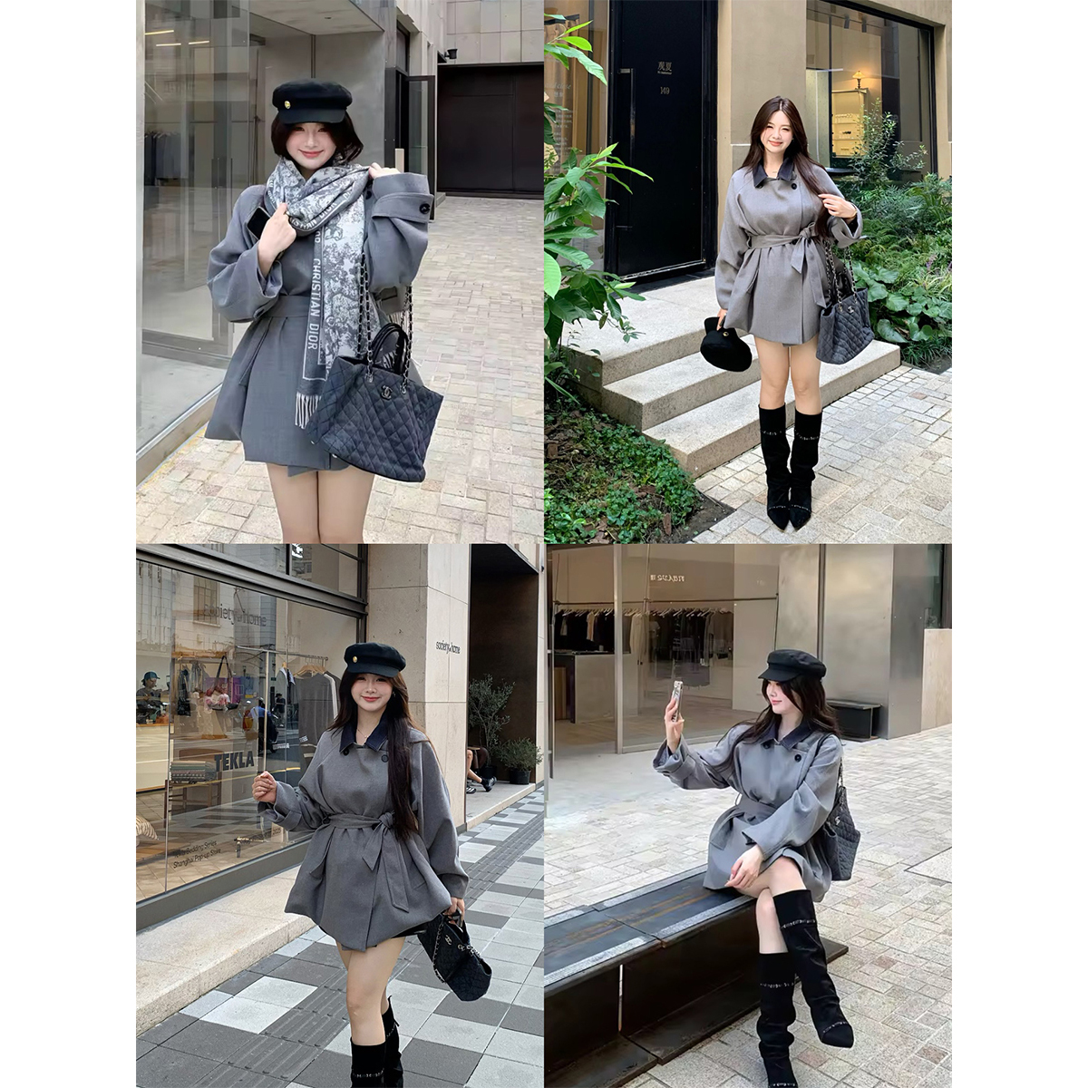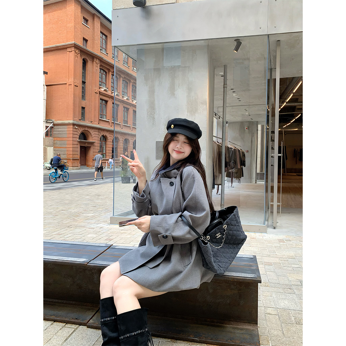 安妮不火 氛围感格纹拼接磨毛猎户短风衣女微胖大码显瘦风衣外套