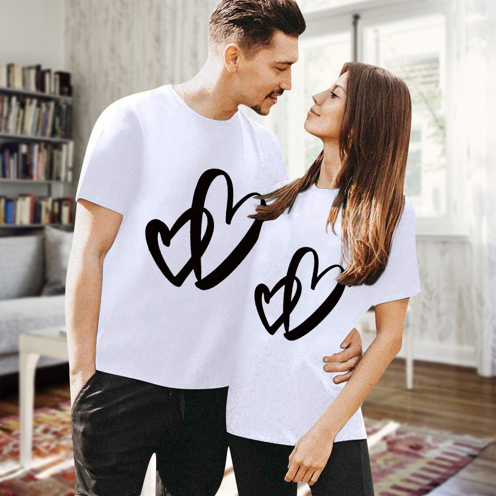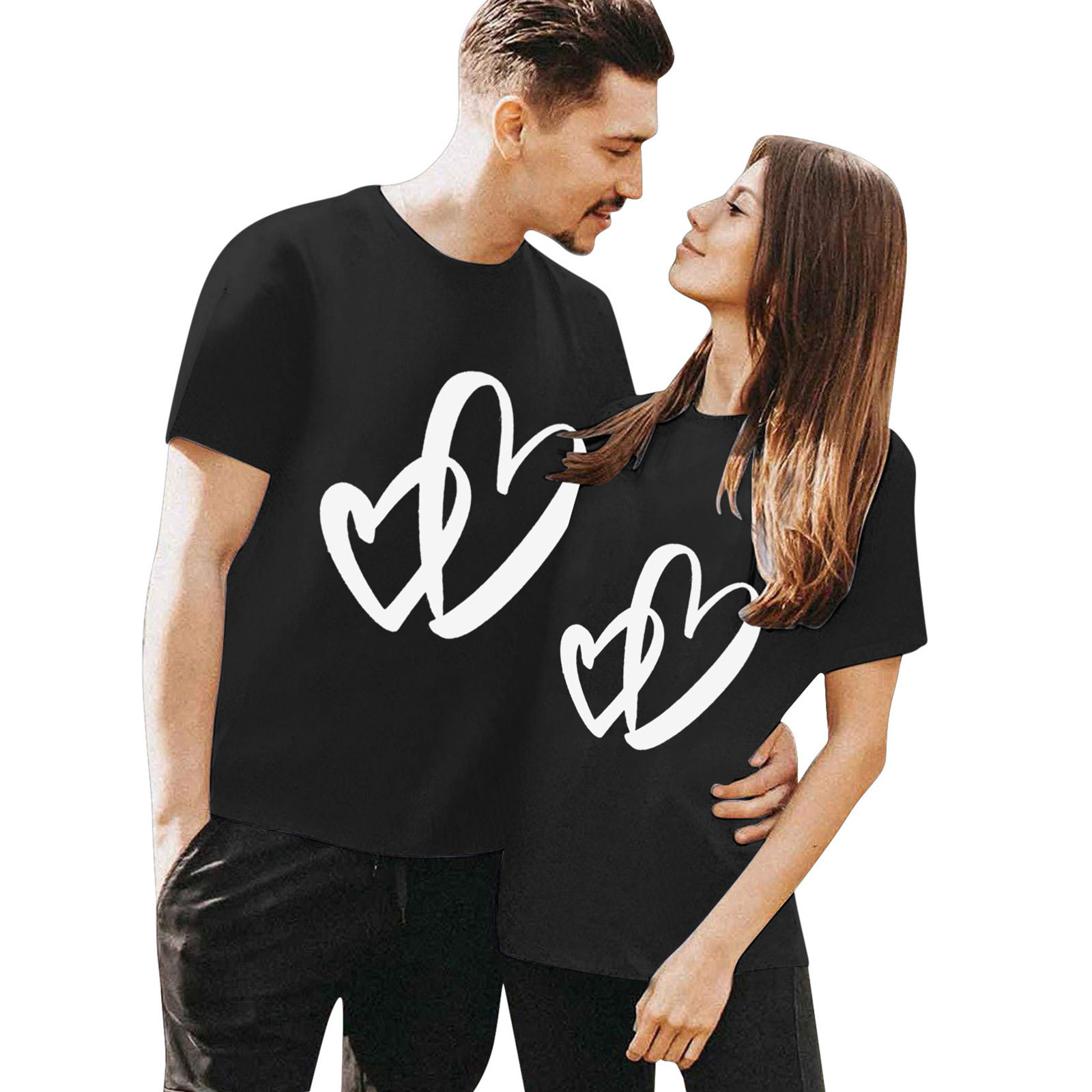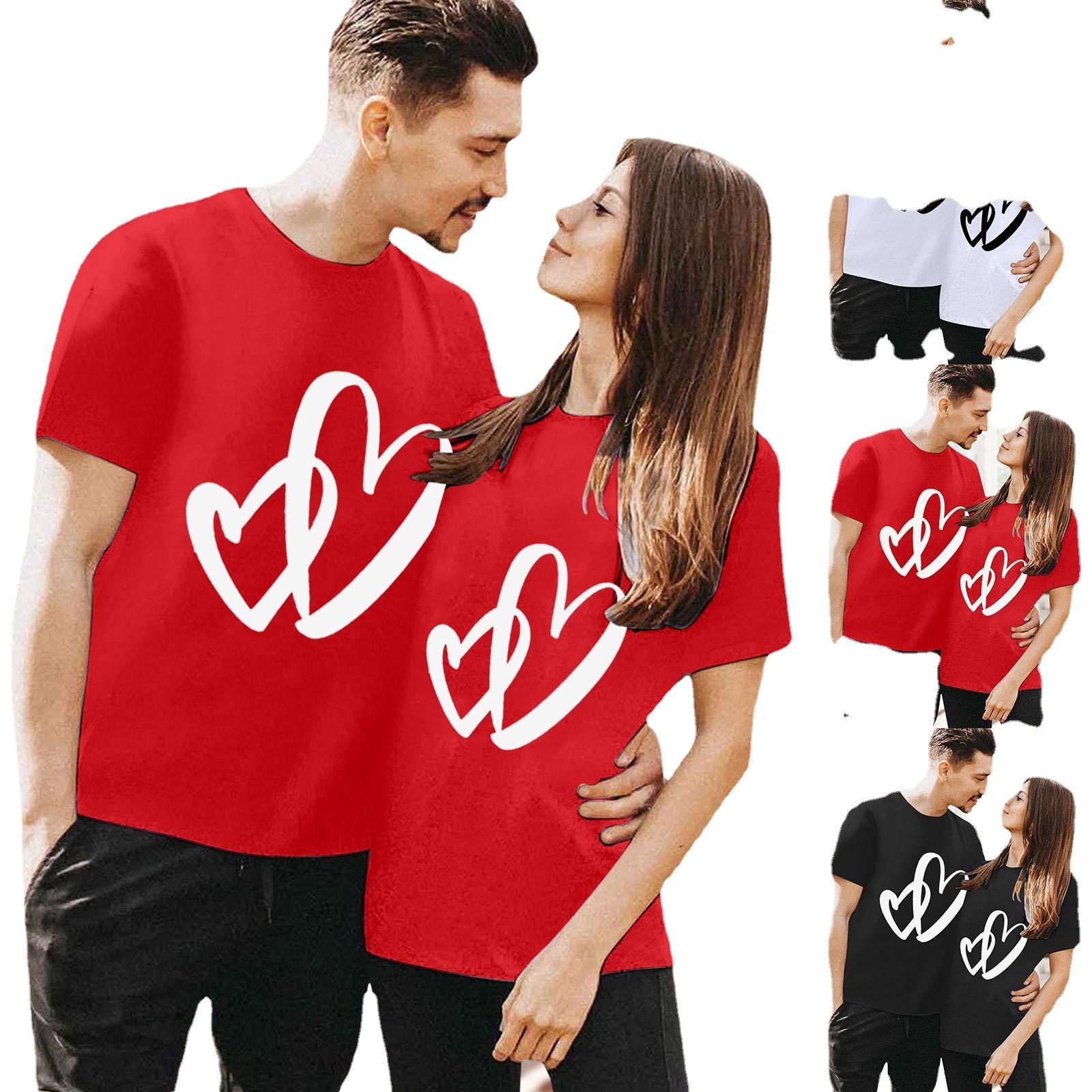 夏安若情侣t恤同色系情人节特色印花跨境女装上衣情人节短袖女