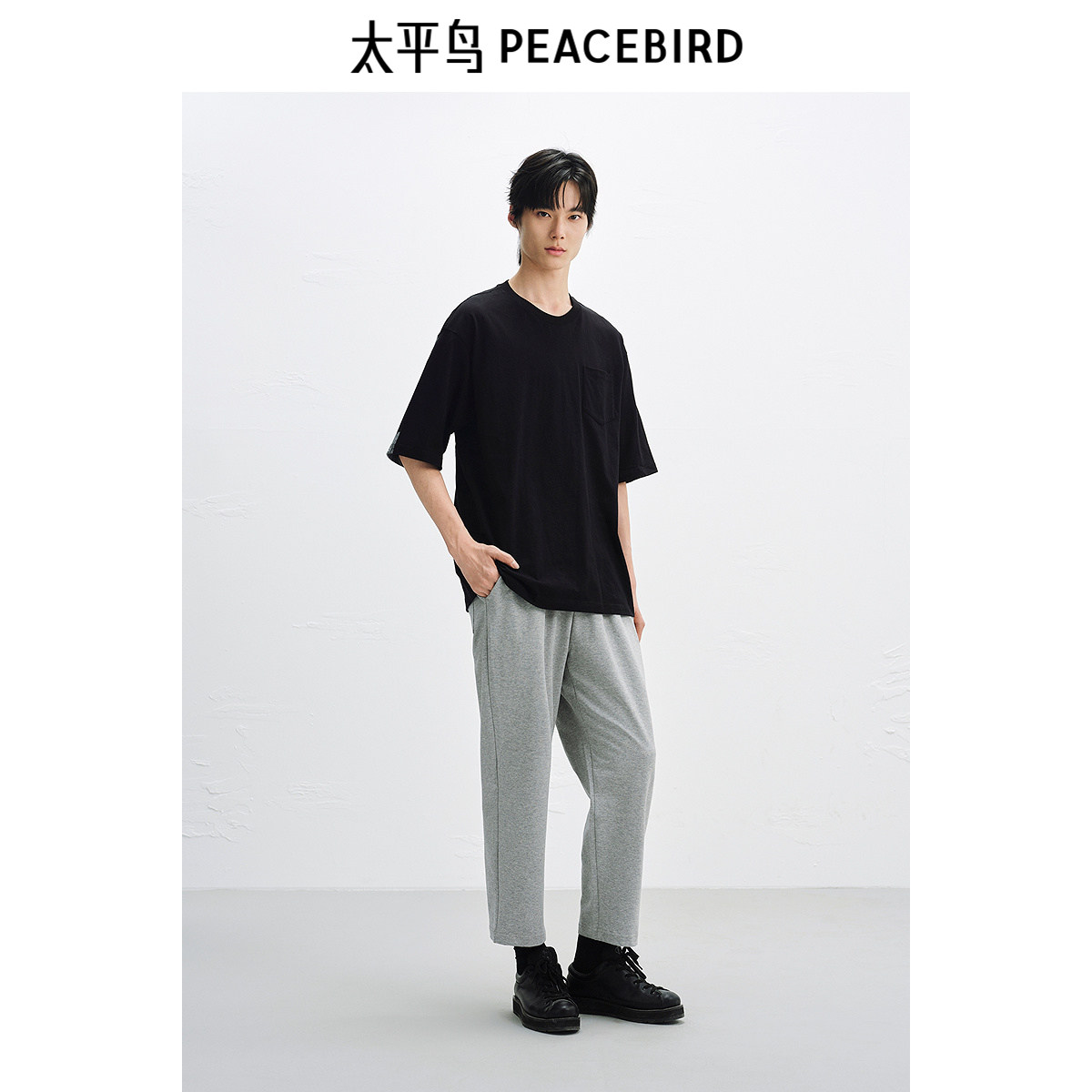 秋冬保暖纯色加绒加厚短袖T恤男韩版宽松大码半袖圆领卫衣打底衫