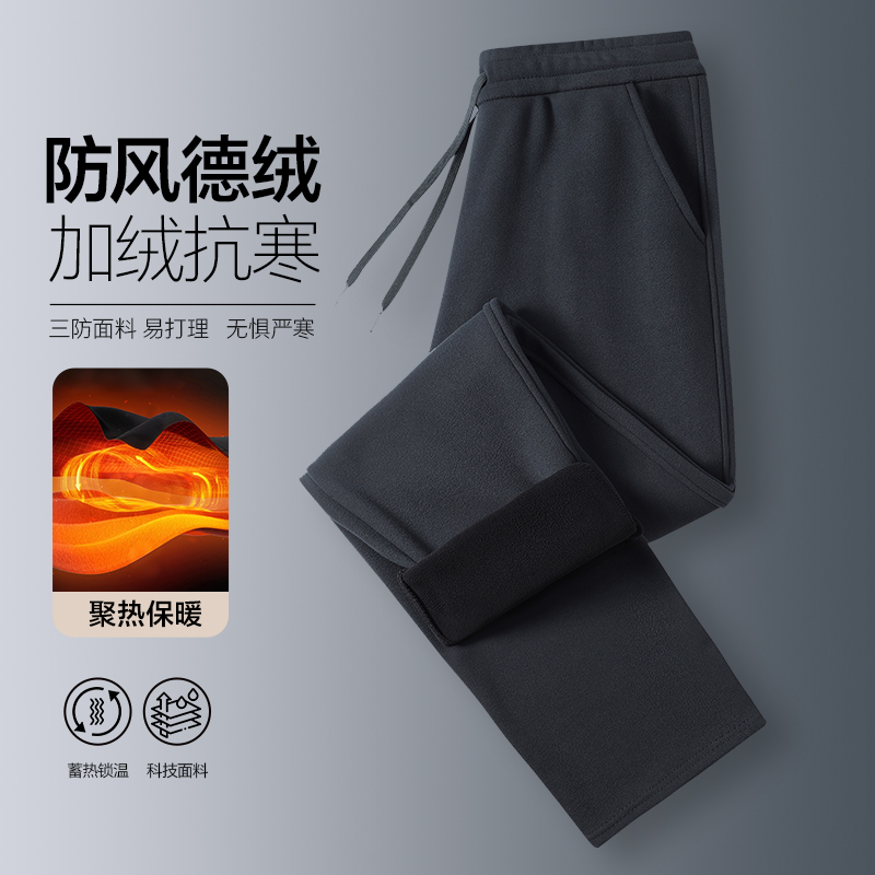 秋冬季中年男士加绒加厚休闲长裤德绒保暖直筒运动裤双面磨毛卫裤
