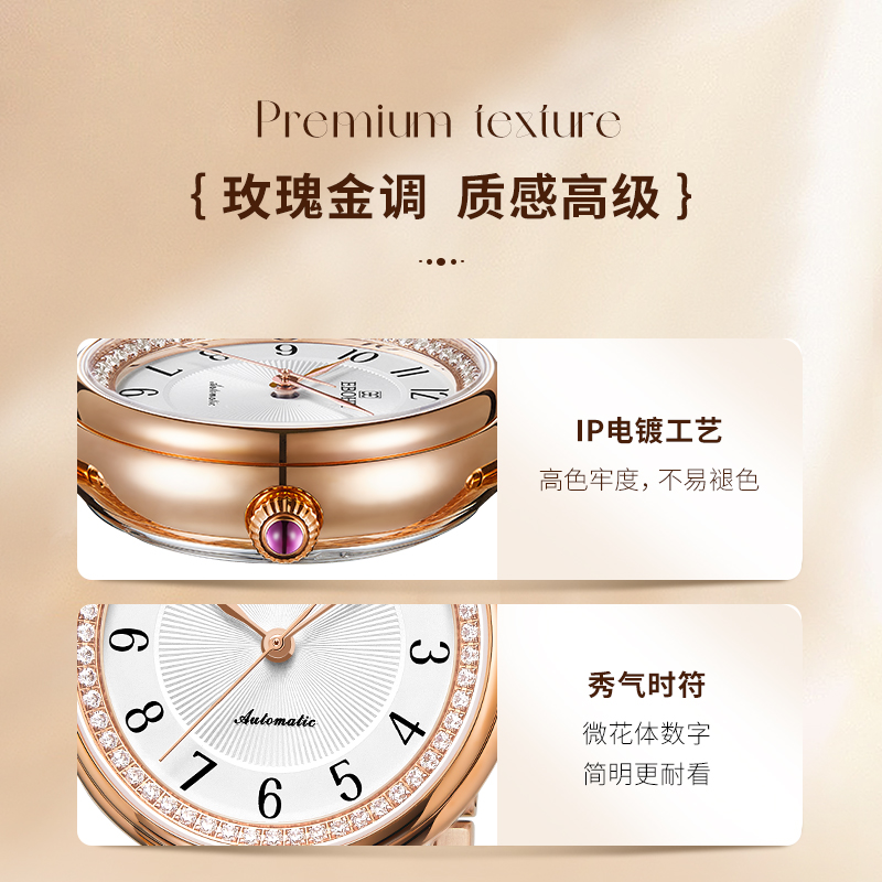 依波表手表女轻奢气质女生礼物全自动机械表复古锆石女士腕表5190