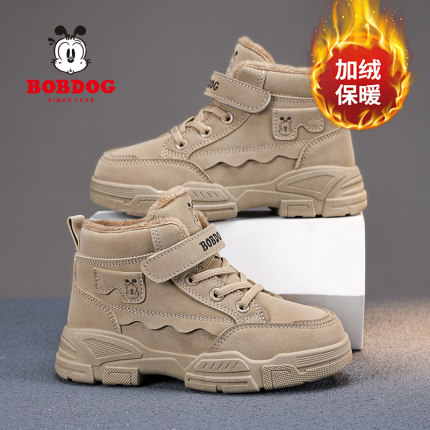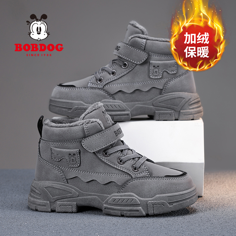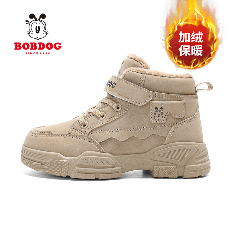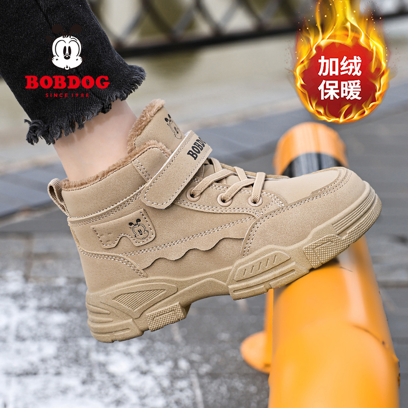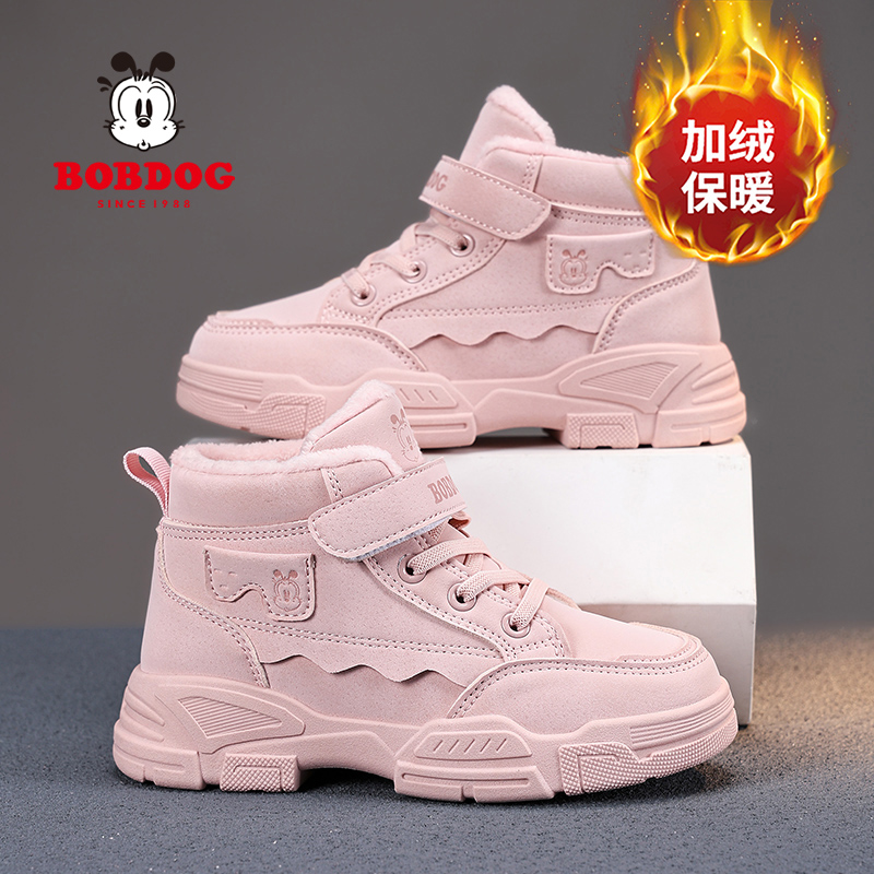 巴布豆童鞋男童马丁靴儿童加绒保暖棉鞋中大童女童靴子防滑雪地靴