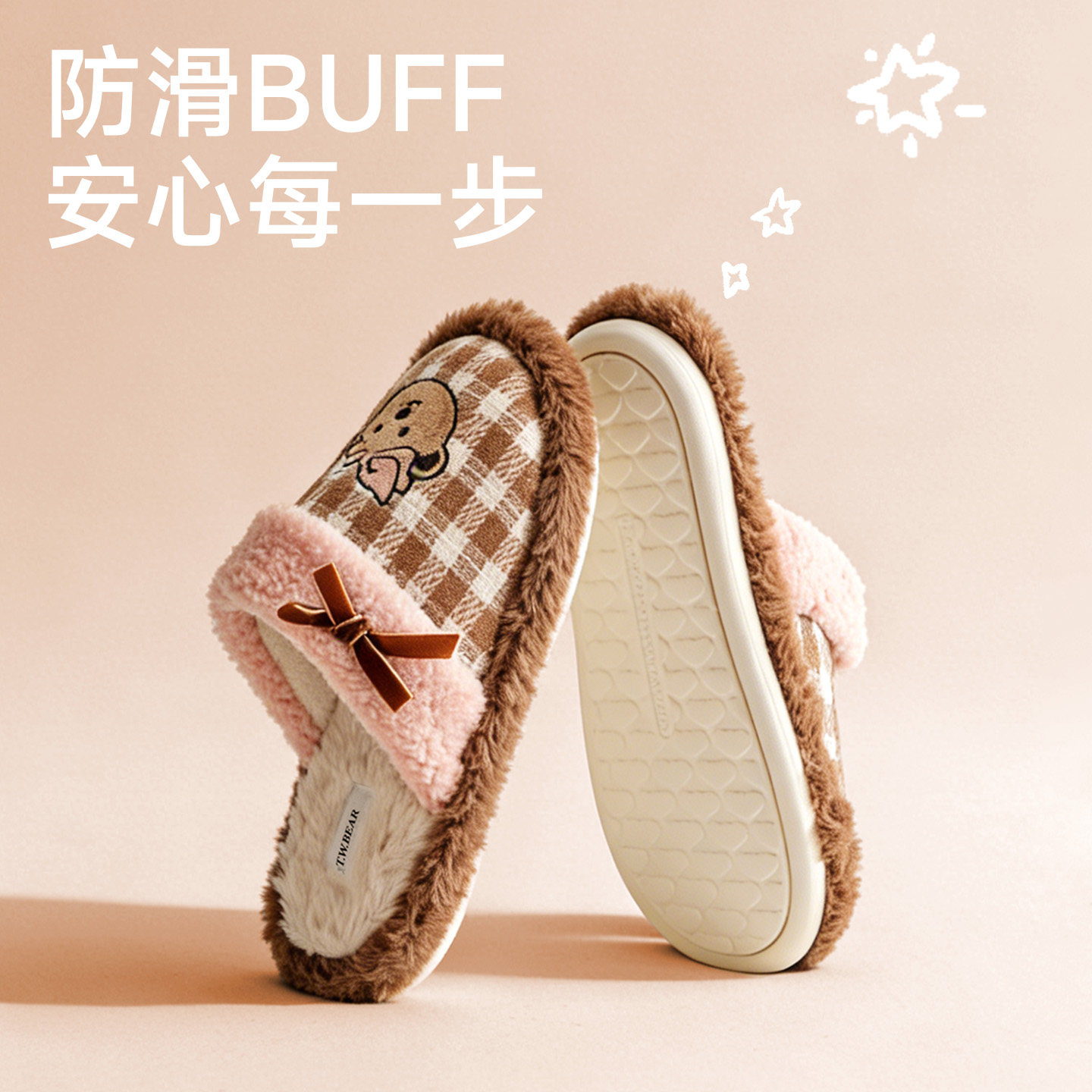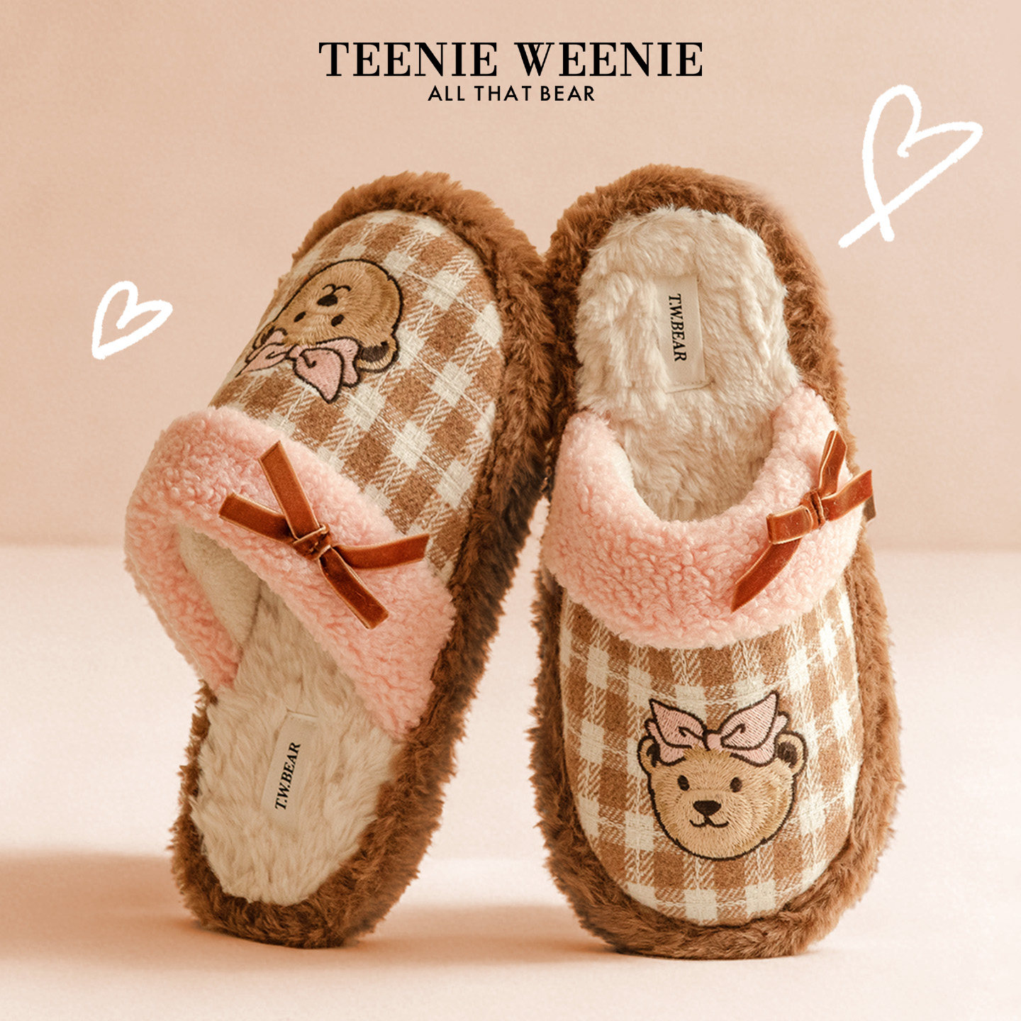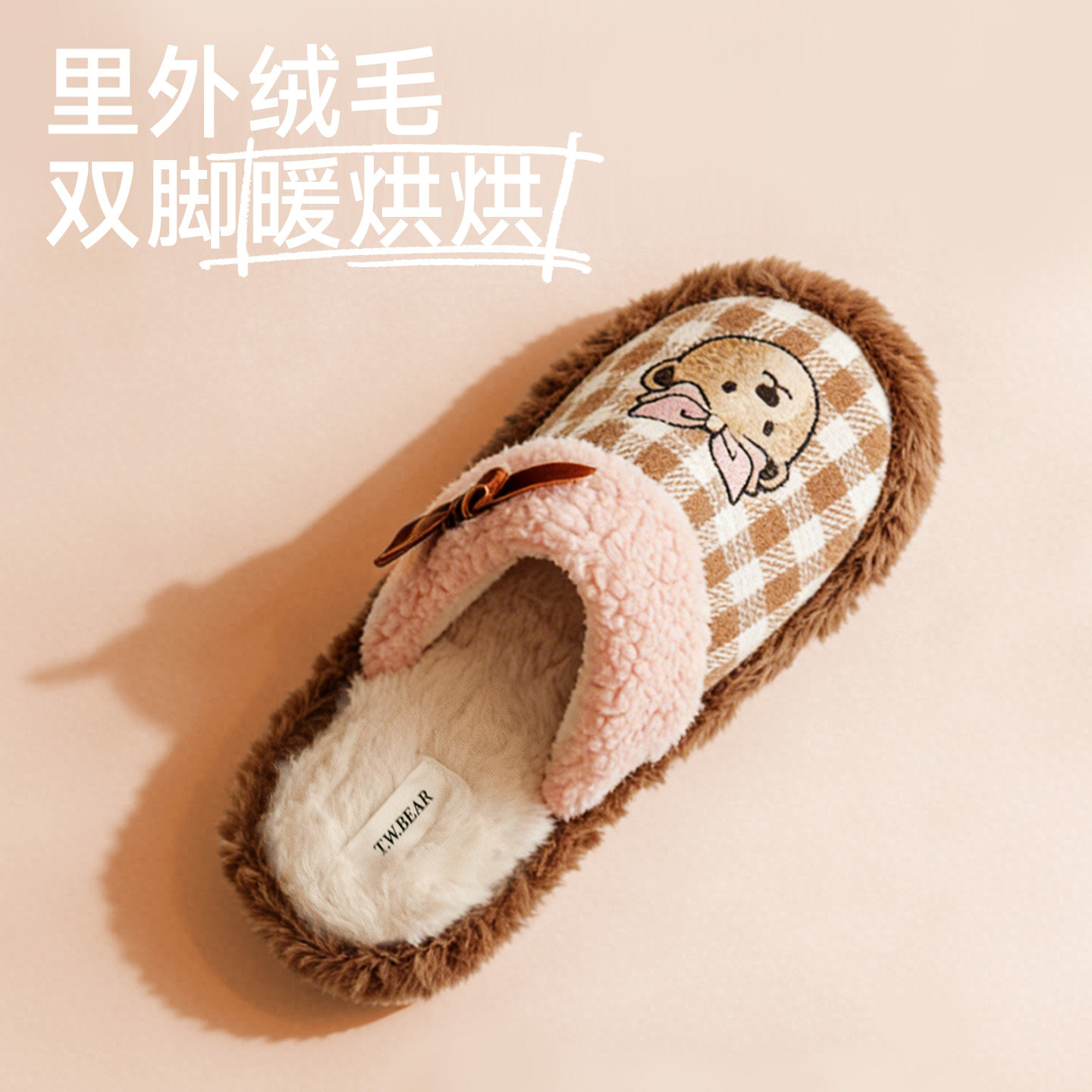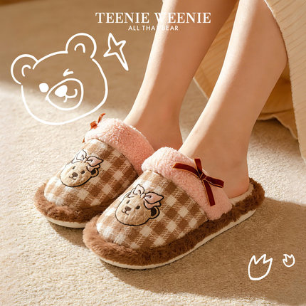 TeenieWeenie小熊刺绣棉拖鞋女2026新款冬季保暖防滑居家毛绒拖鞋