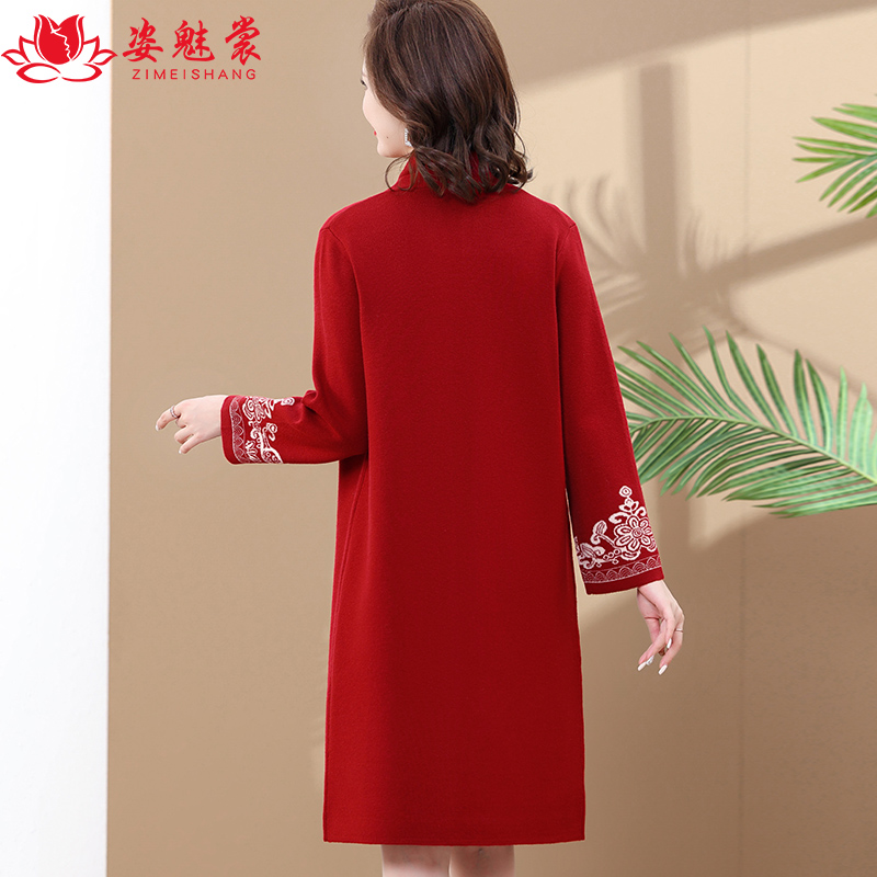 洋气中长款毛衣旗袍大码妈妈装