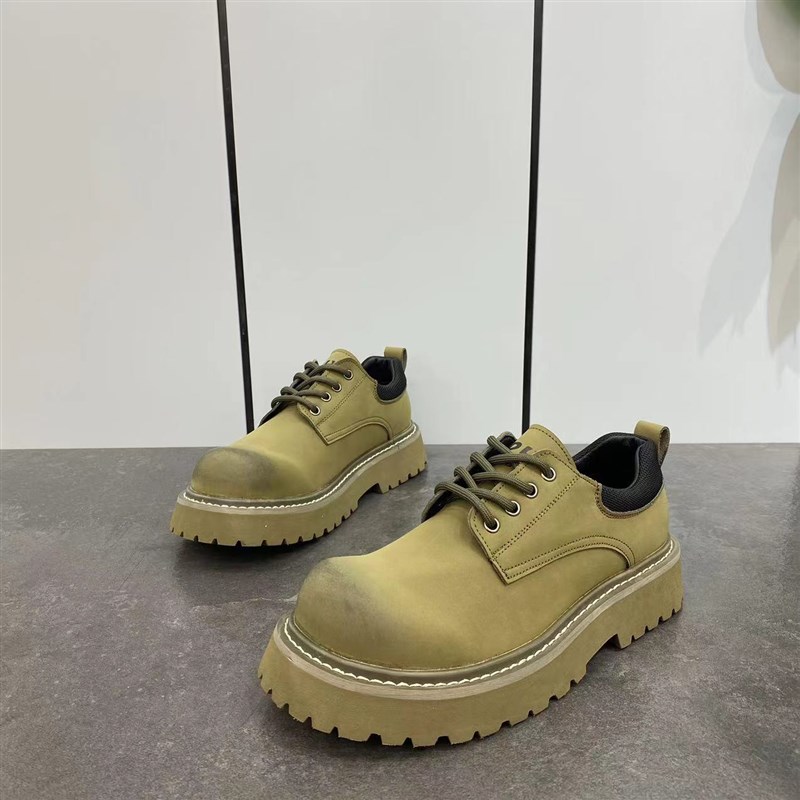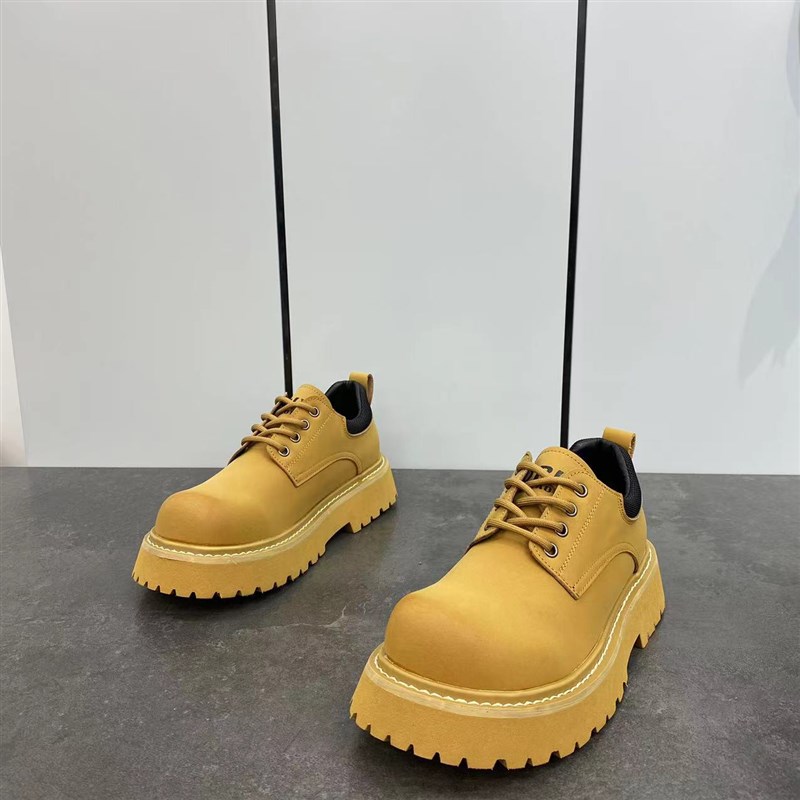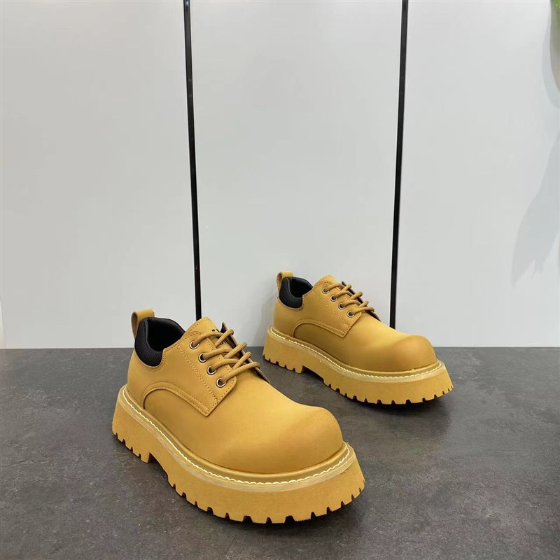 男鞋低帮厚底大黄靴2024秋季轻便皮面大头皮鞋轻便百搭潮流马丁靴