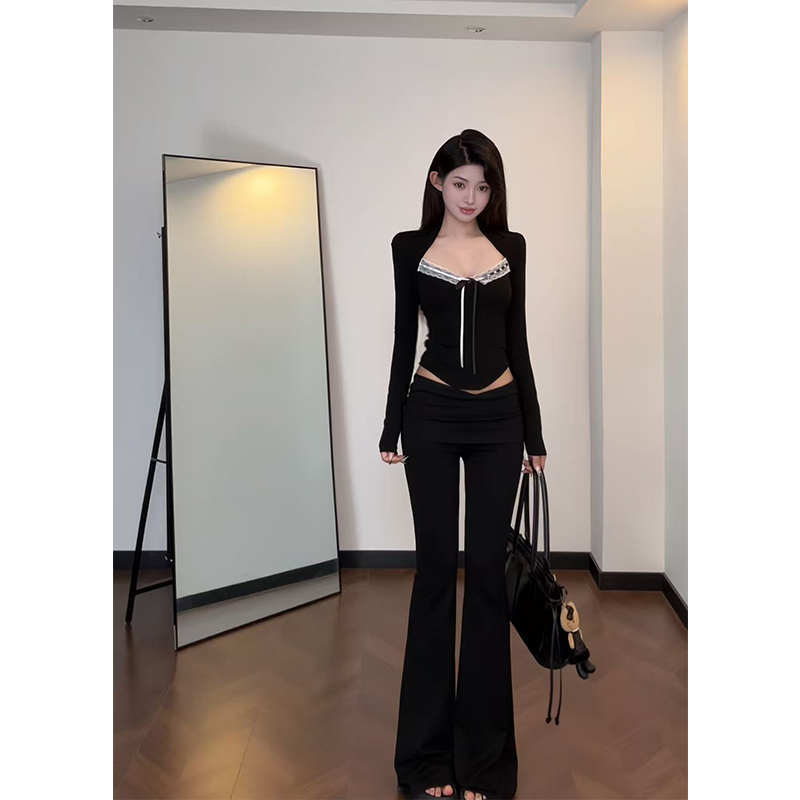 【Carrive宋肉肉】两件套蕾丝拼接V领口吊带内搭+长袖坎肩上衣女