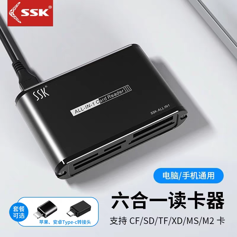 SSK飚王机器人SCRM025 金属多功能读卡器TF /SD/CF/M2/MS/XD卡