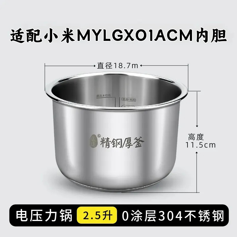 适配通用小米米家智能电压力锅2.5L升内胆MYLGXO1ACM无涂层不锈钢