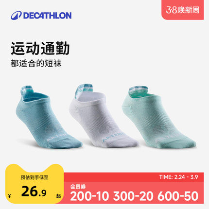迪卡侬袜子男短袜女夏运动袜跑步篮球袜船袜棉透气吸汗短筒袜OVA1