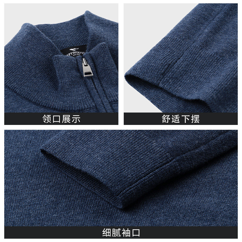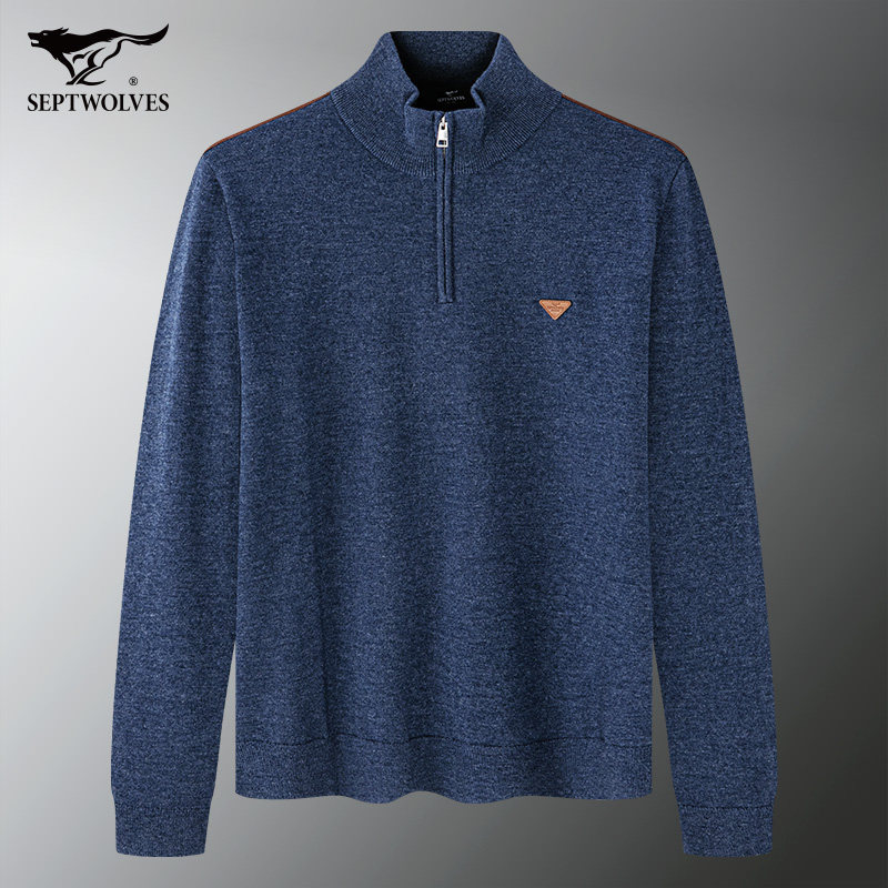 七匹狼加厚半拉链羊毛衫男2024年新品男士毛衣爸爸纯羊毛针织衫潮