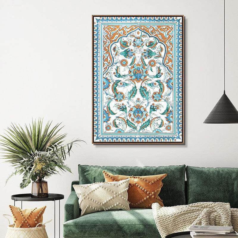 摩洛哥风格建筑壁画阿拉伯民族酒店餐厅客厅沙发装饰画青绿色系列