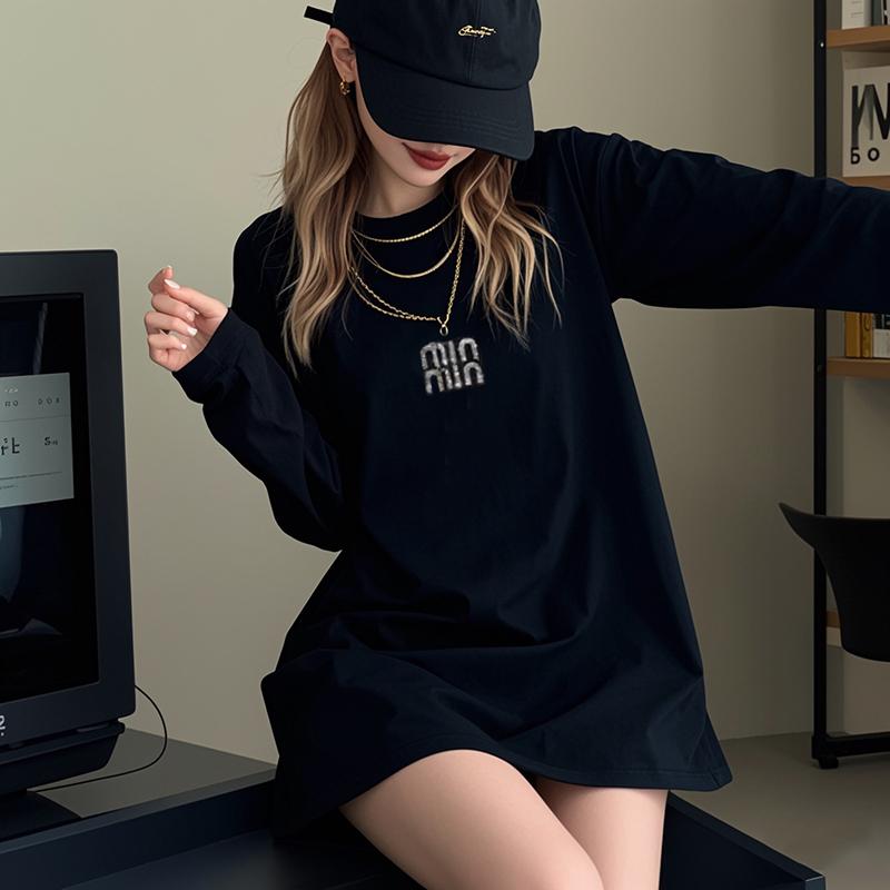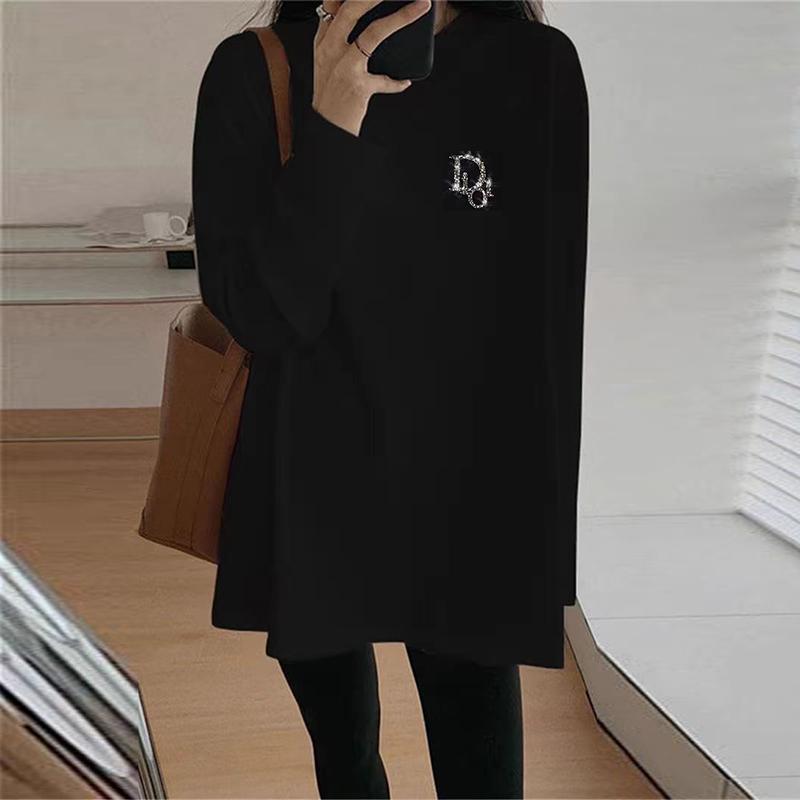长袖大码t恤女加绒中长款烫钻连衣裙欧货重工大码女装秋冬打底衫