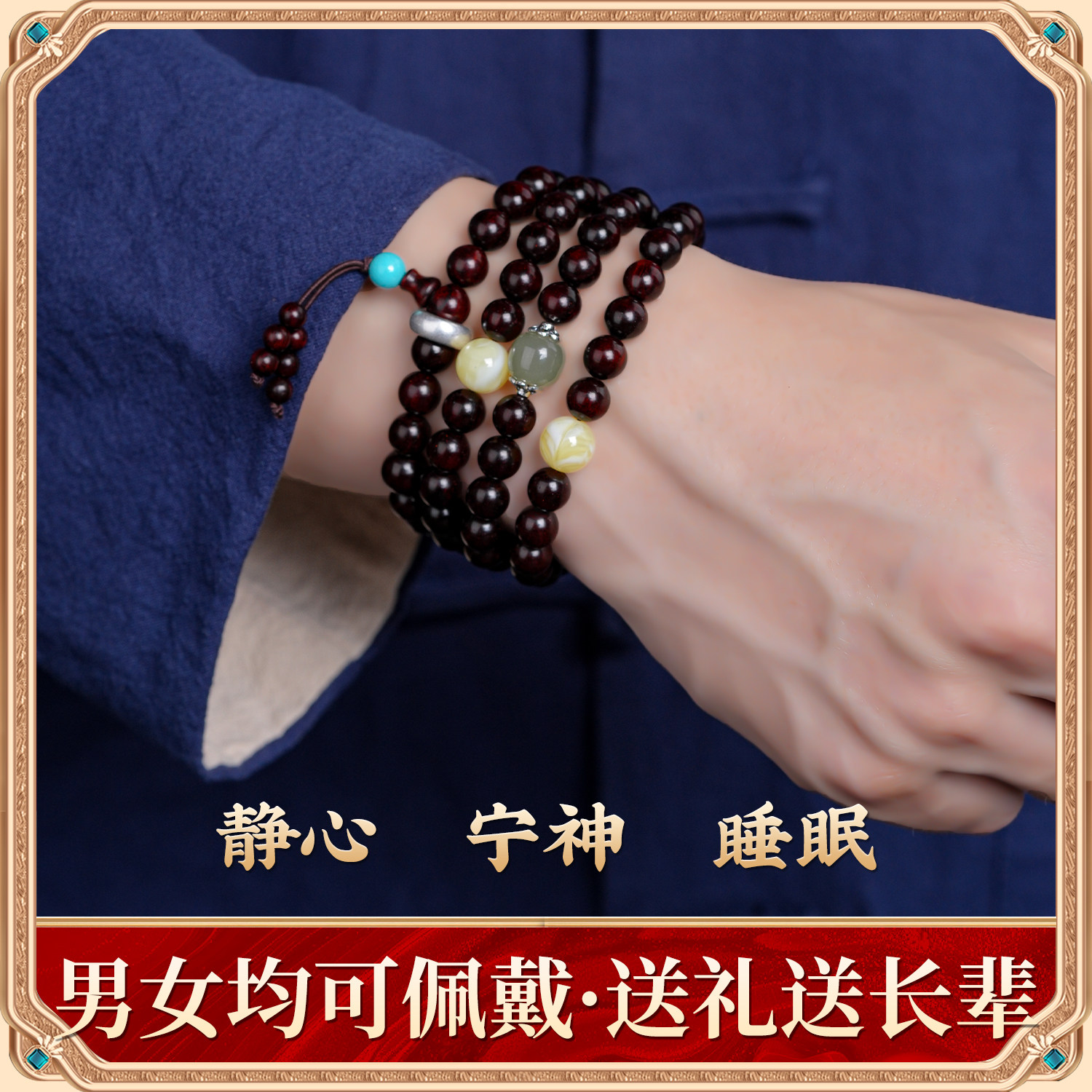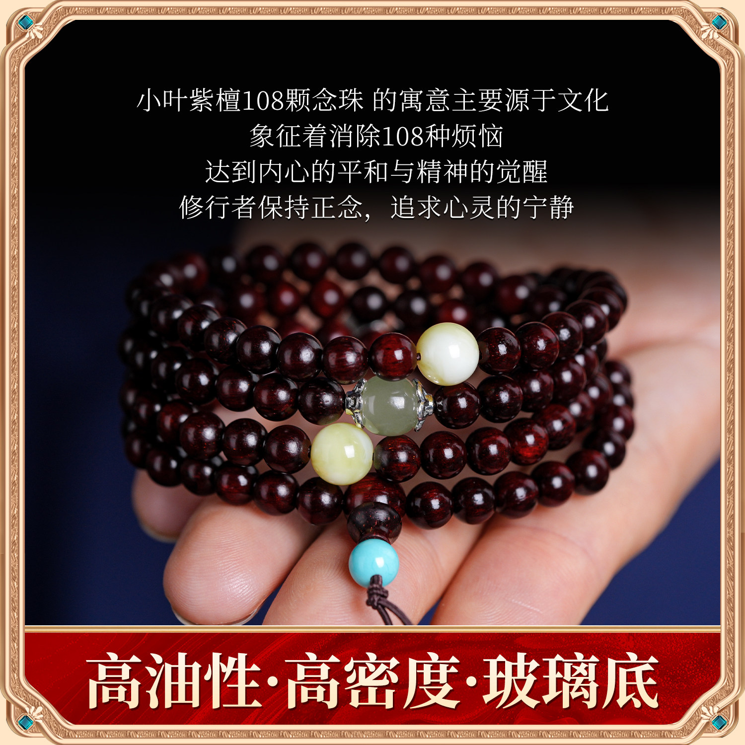 高端印度小叶紫檀手串108颗佛珠本命年手链男生手串生日礼物女士