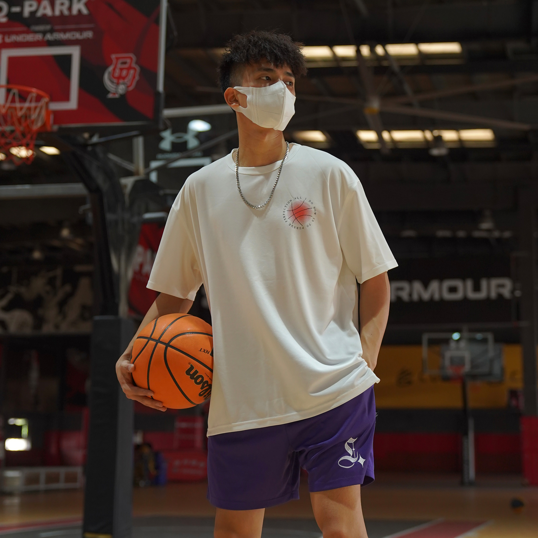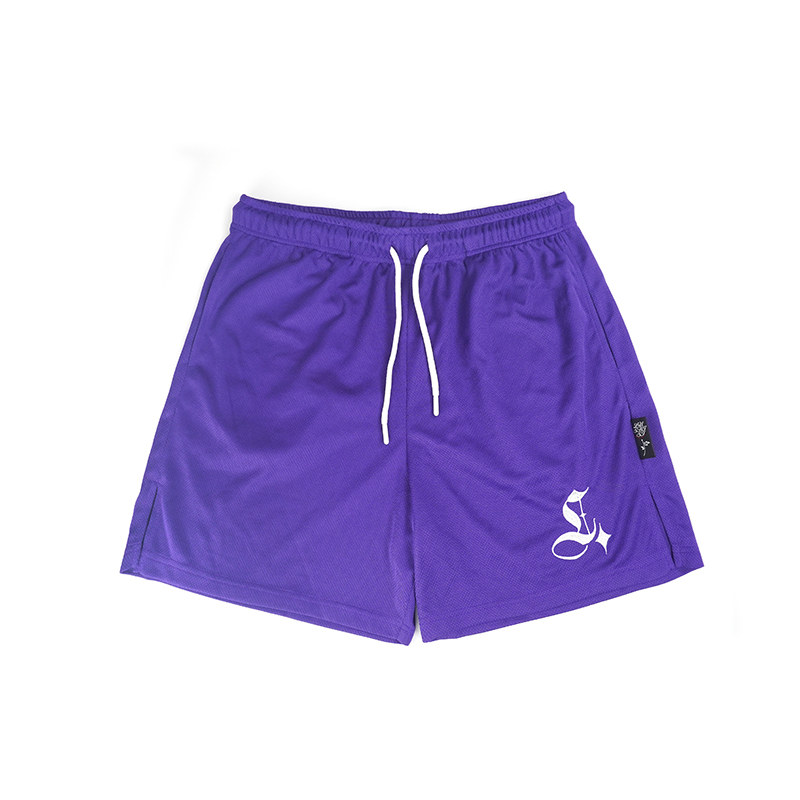 LUSHISI休闲美式街头短裤[紫星]主题宽松运动复古不过膝网眼裤男