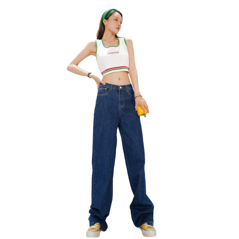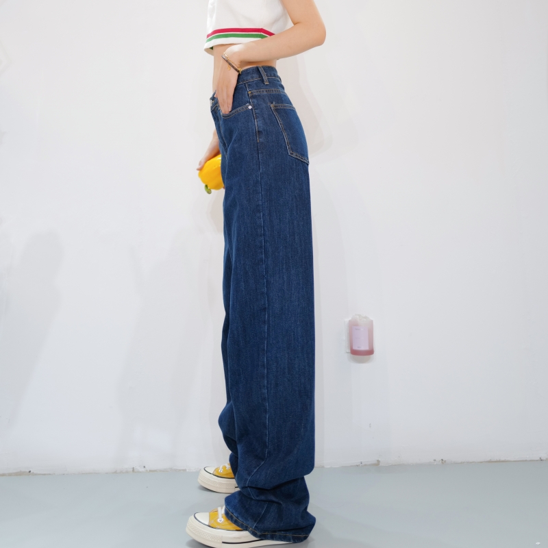 高个子175女生加长深蓝牛仔裤新春秋2025高腰显瘦宽松直筒拖地裤