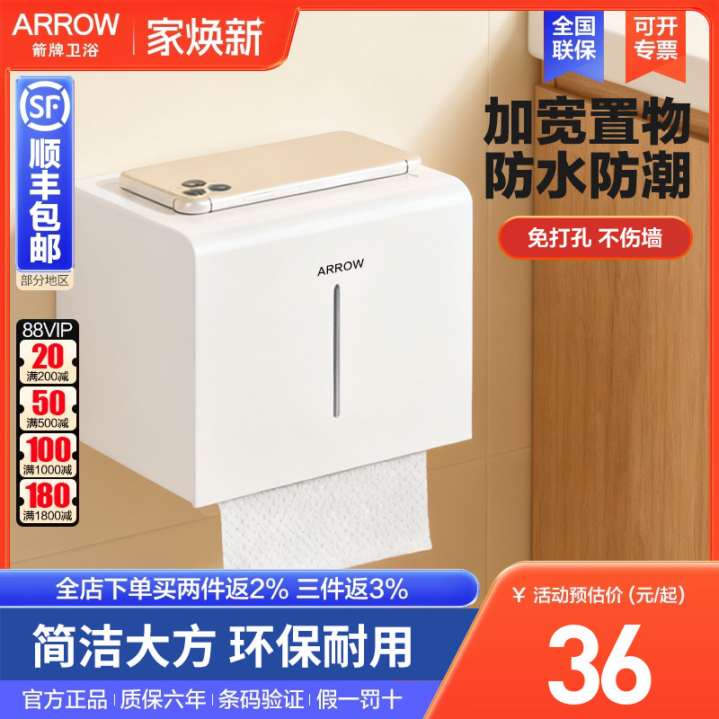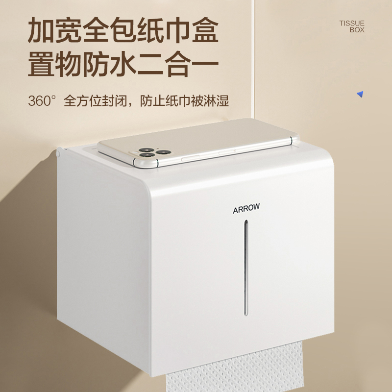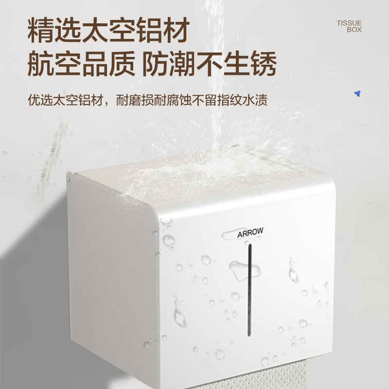 arrow箭牌卫浴纸巾盒太空铝置物厕纸盒抽纸卷纸通用全包免打孔