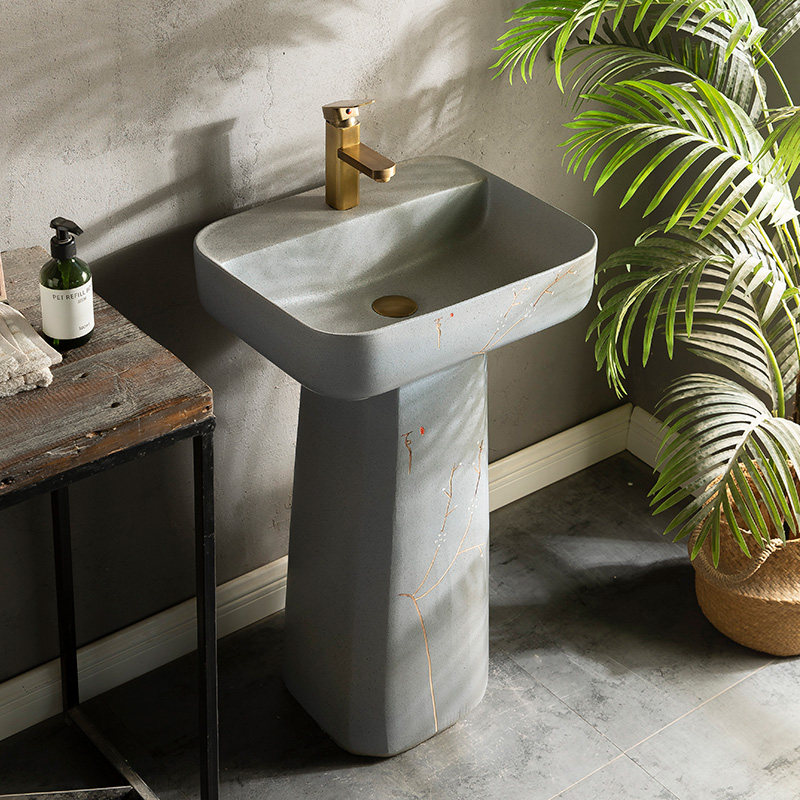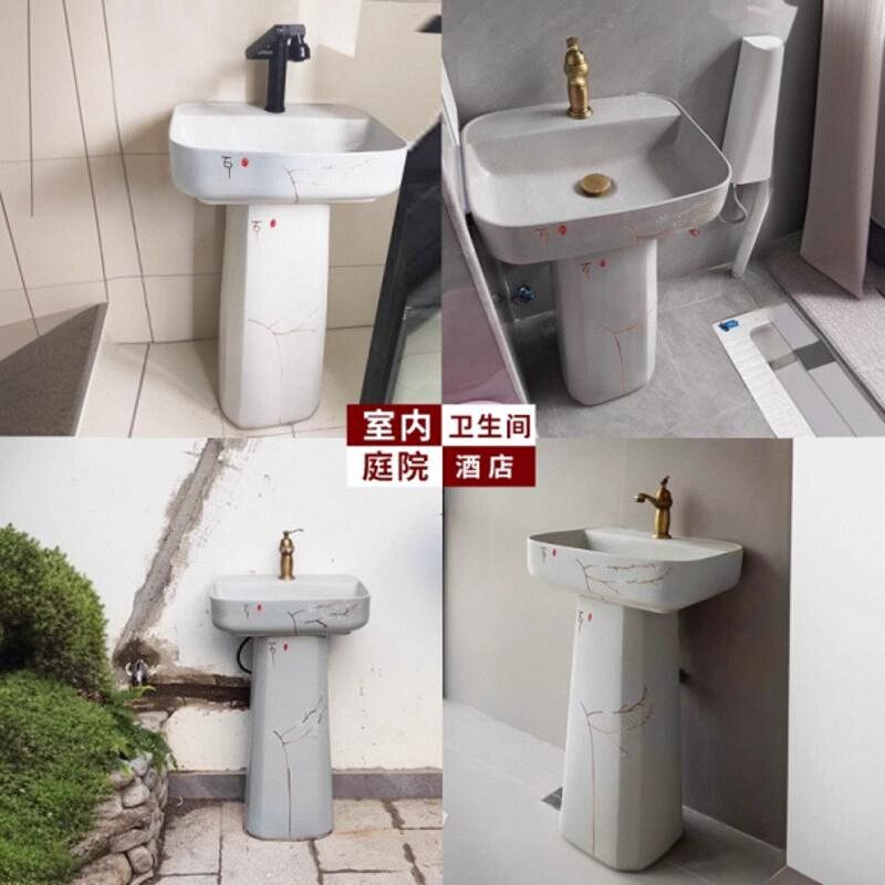 洗面盆立式台盆立柱式洗脸盆柱盆户外洗手盆庭院立柱盆一体落地式