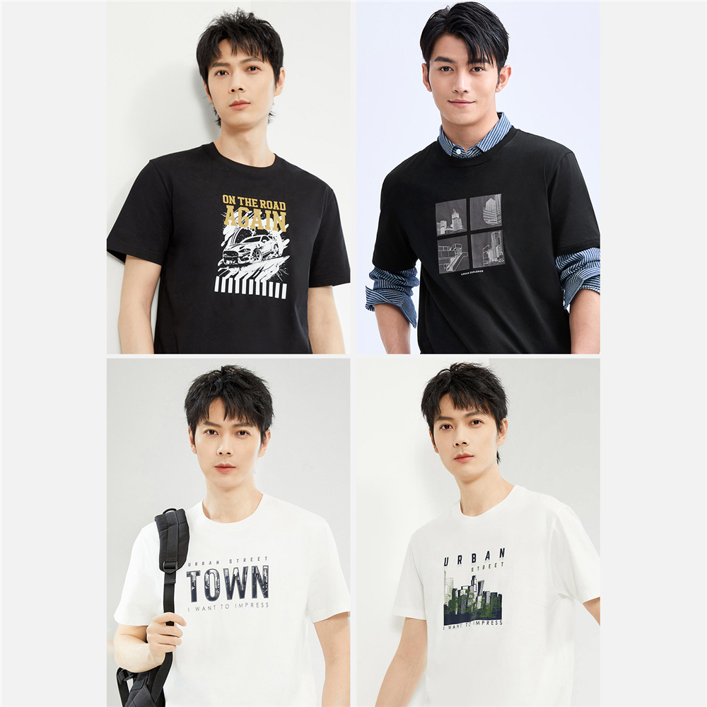佐丹奴短袖休闲青年印花T恤纯棉