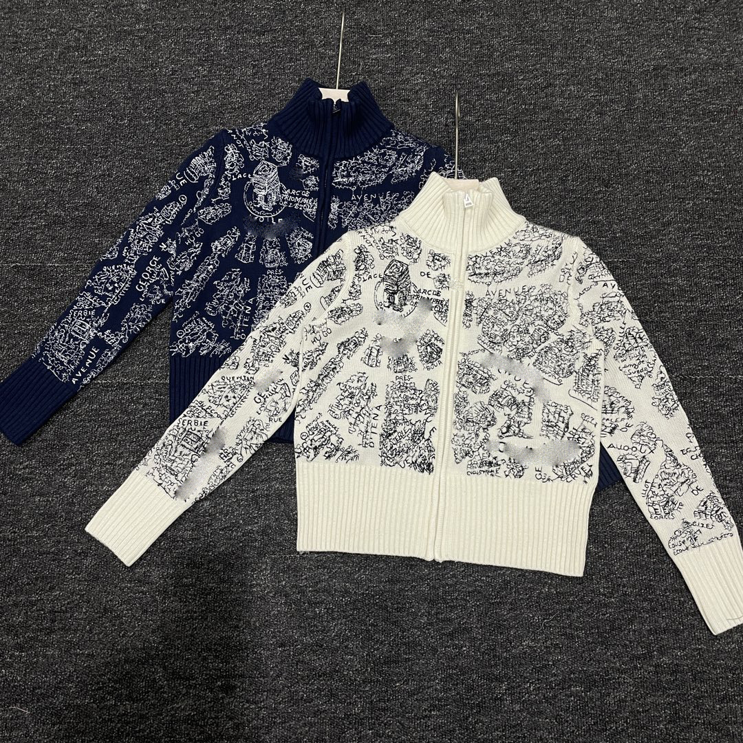 深圳南油重工地图刺绣立领针织开衫女24秋冬新款休闲毛衣外套
