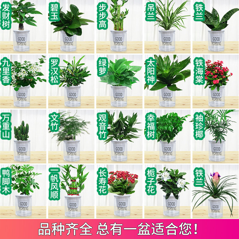 绿萝盆栽室内水培养办公室内发财树栀子白栀子花卉富贵竹吸甲醛