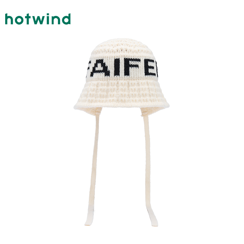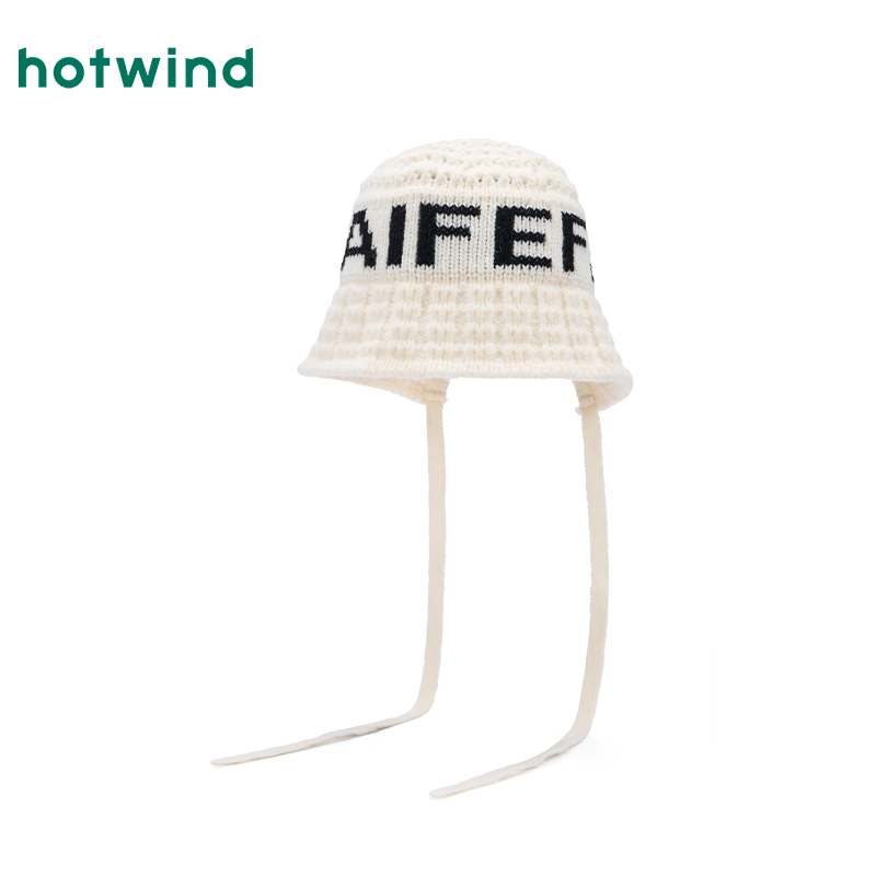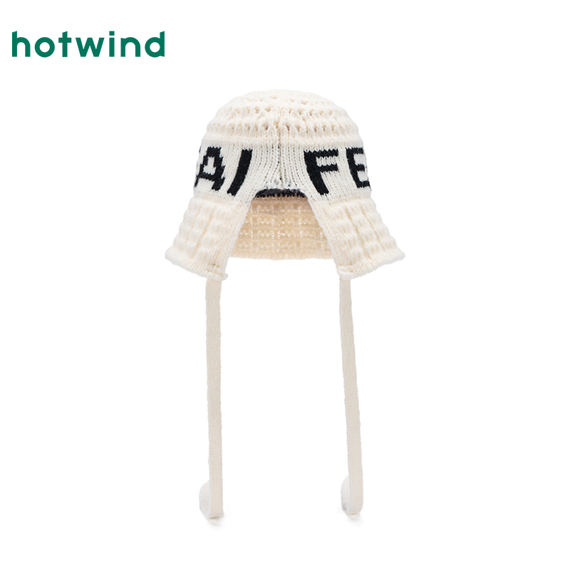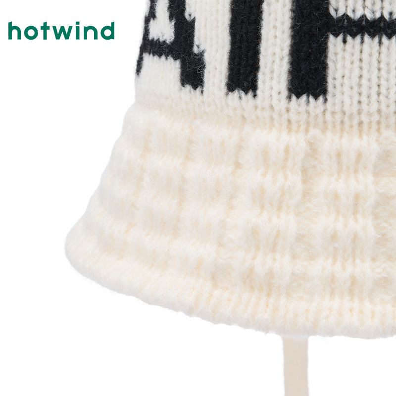 热风女士毛线针织衫帽子2025年冬季新款字母提花毛线帽保暖帽子