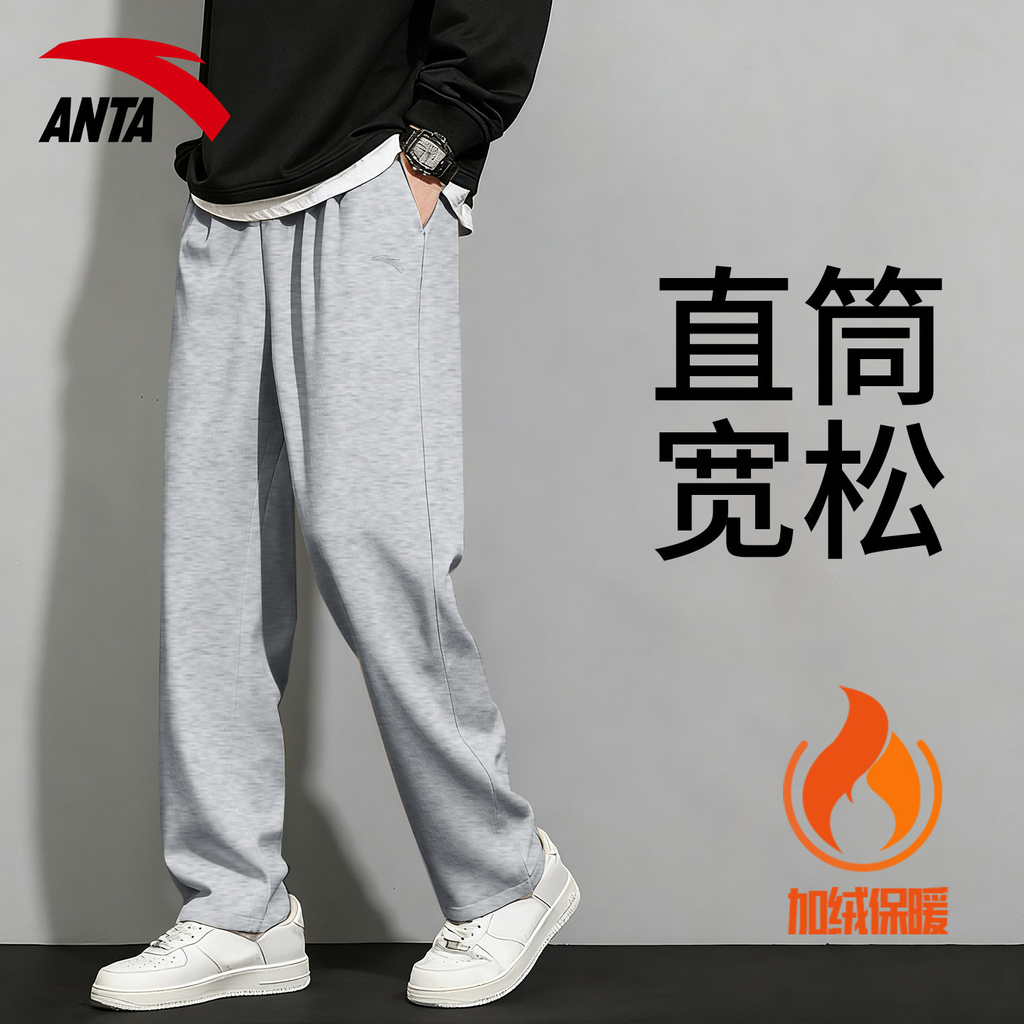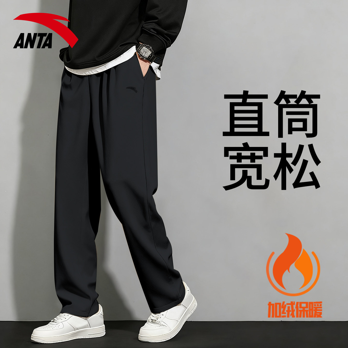 安踏男裤直筒裤子男加绒加厚运动裤百搭黑色卫裤秋冬季男士休闲裤