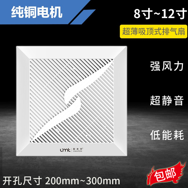天花管道式排气扇集成吊顶厨房换气扇8/10/12寸化妆室吸顶通风扇