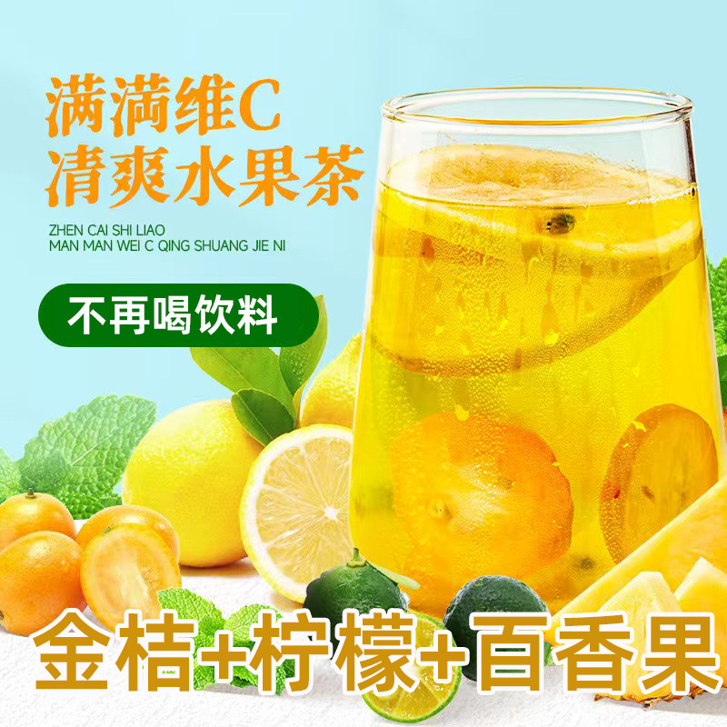 金桔柠檬百香果水果茶冲饮泡水喝冷泡免煮水果茶奶茶店独立小包装