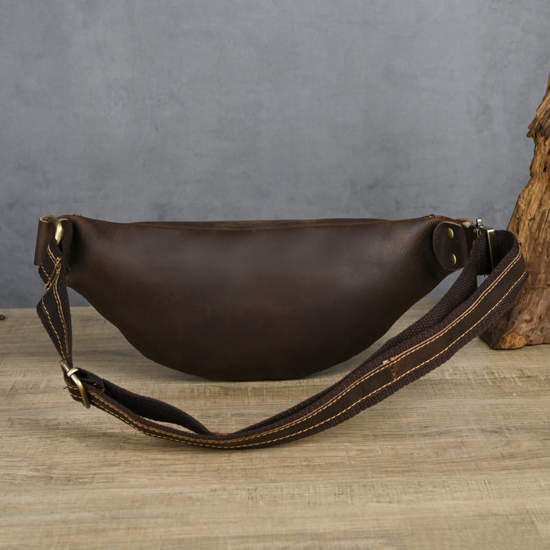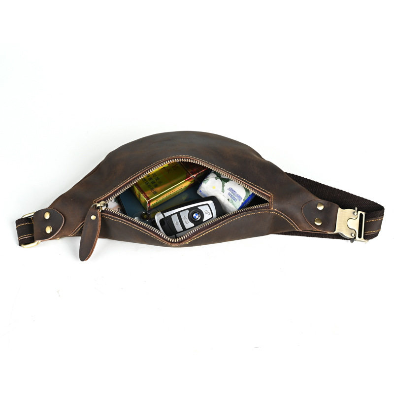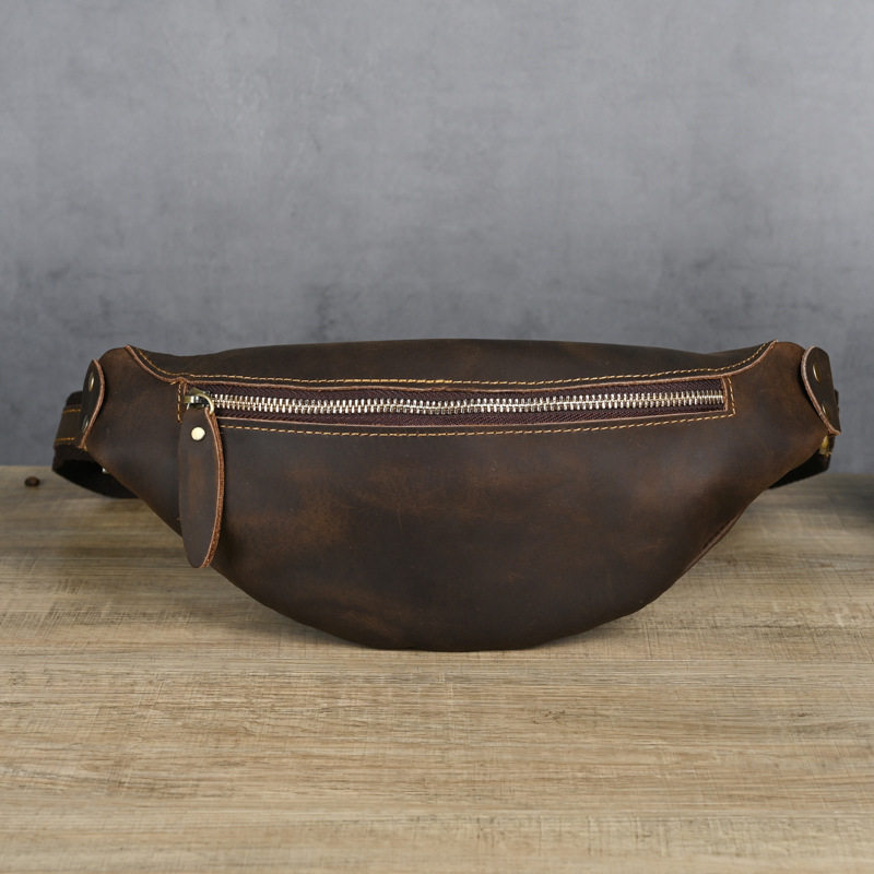 胸包复古疯马皮腰包头层牛皮单肩斜挎包真皮做旧机车休闲手机男包