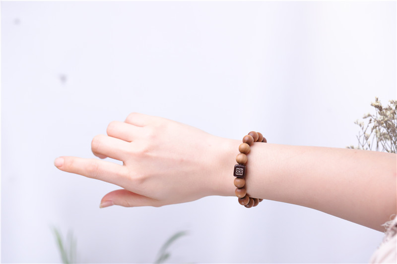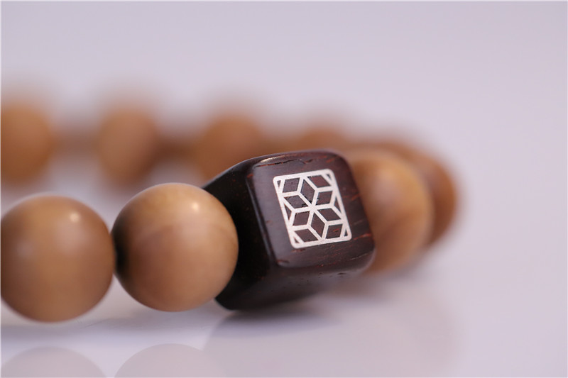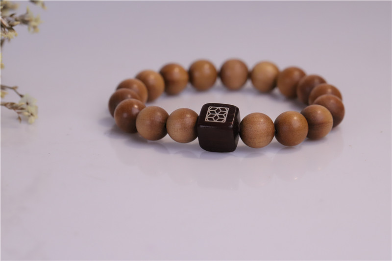 正宗印度老山檀香1.0cm搭配小叶紫檀镶银方珠手串手链