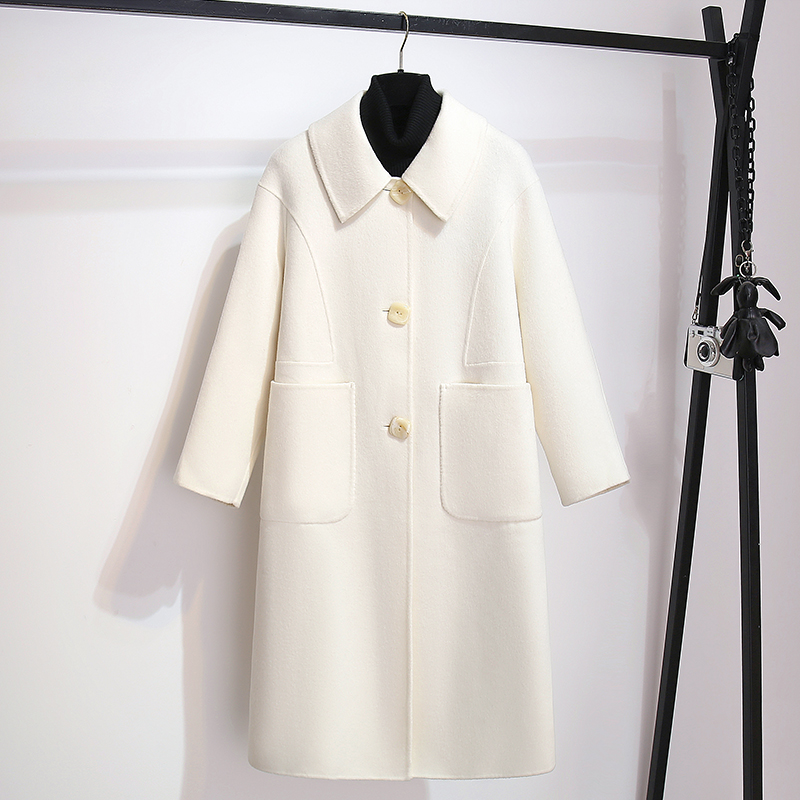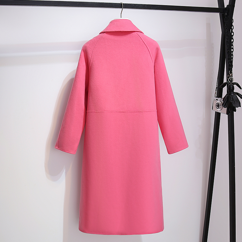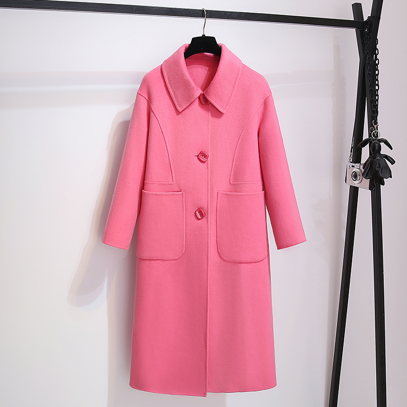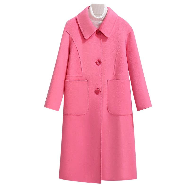 粉色中长款高支双面绒外套女2025年深秋初冬新款羊毛呢子宽松大衣