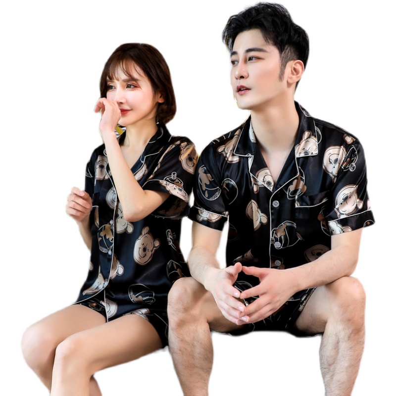 情侣睡衣男夏季冰丝薄短袖2025年新款仿真丝绸春夏天家居服女套装