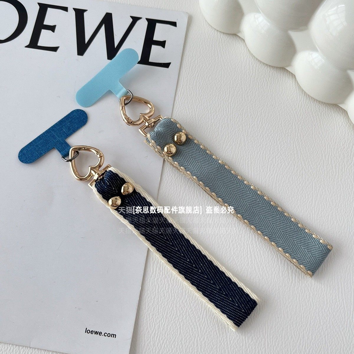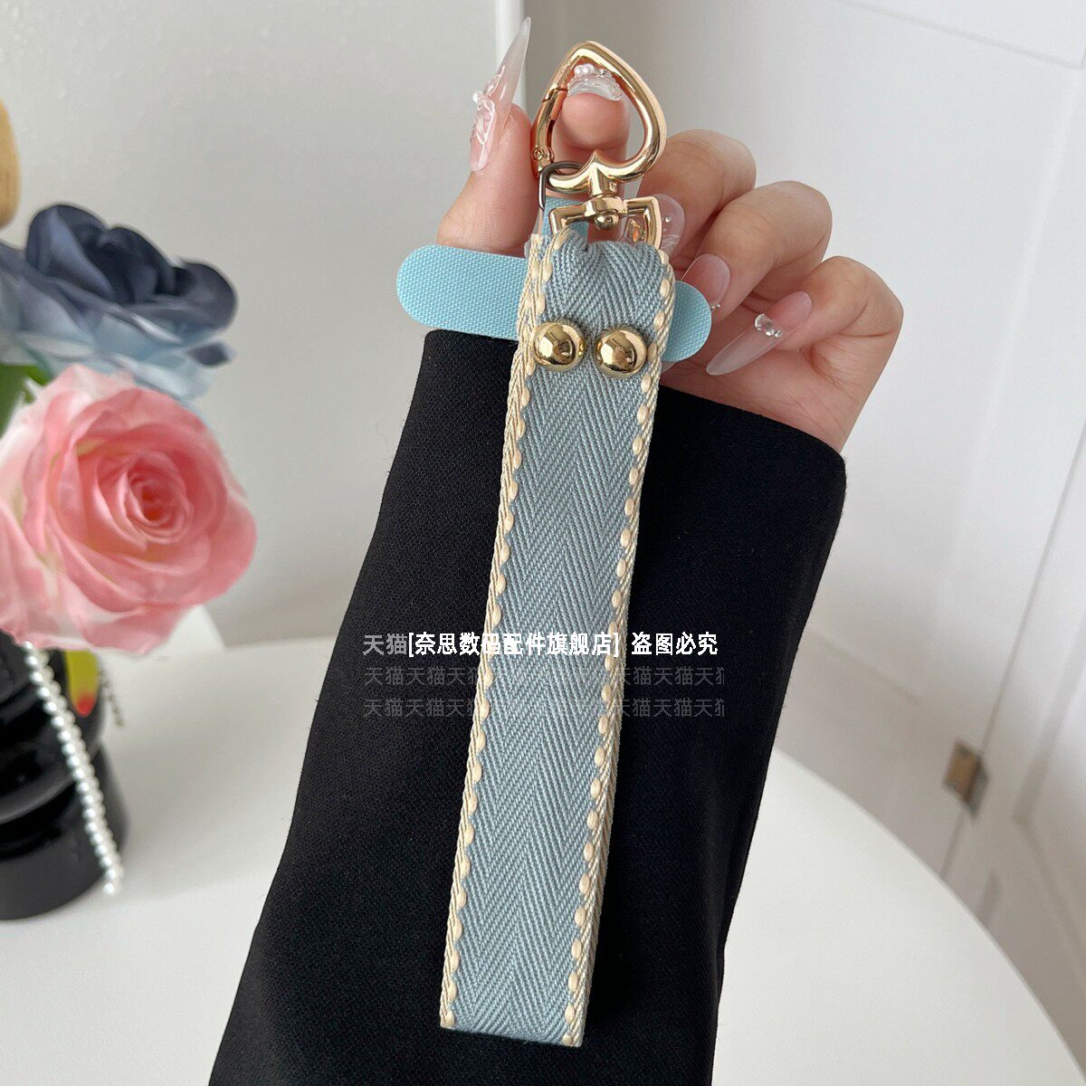 蓝牛仔布艺手机挂绳加宽挂手腕带子防丢绳结实百搭腕带手绳短款u盘包包耳机钥匙扣挂件耐用吊绳女卡垫夹片壳