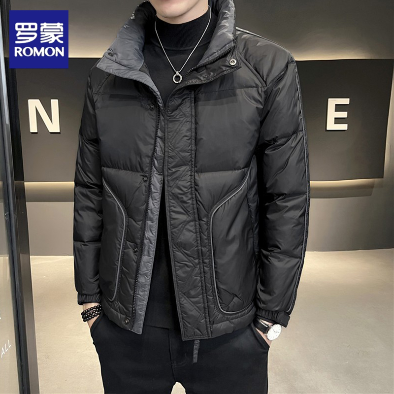 品牌短款羽绒服罗蒙立领高端