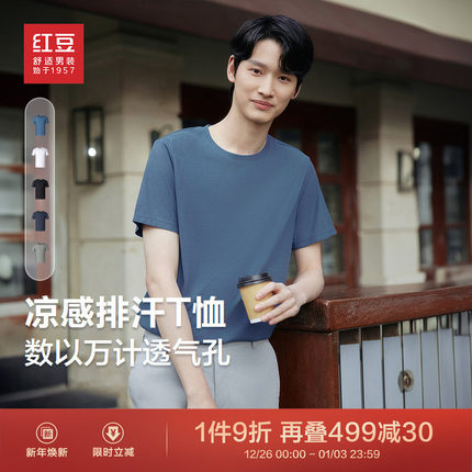 【清仓华夫格】红豆短袖T恤男夏季新款凉感纯色休闲半袖打底衫