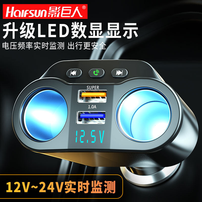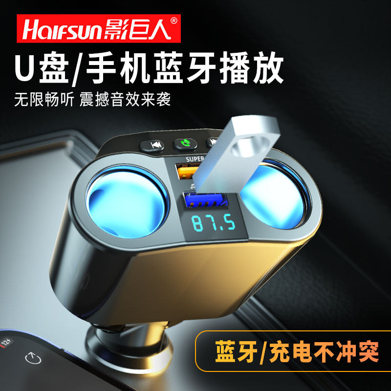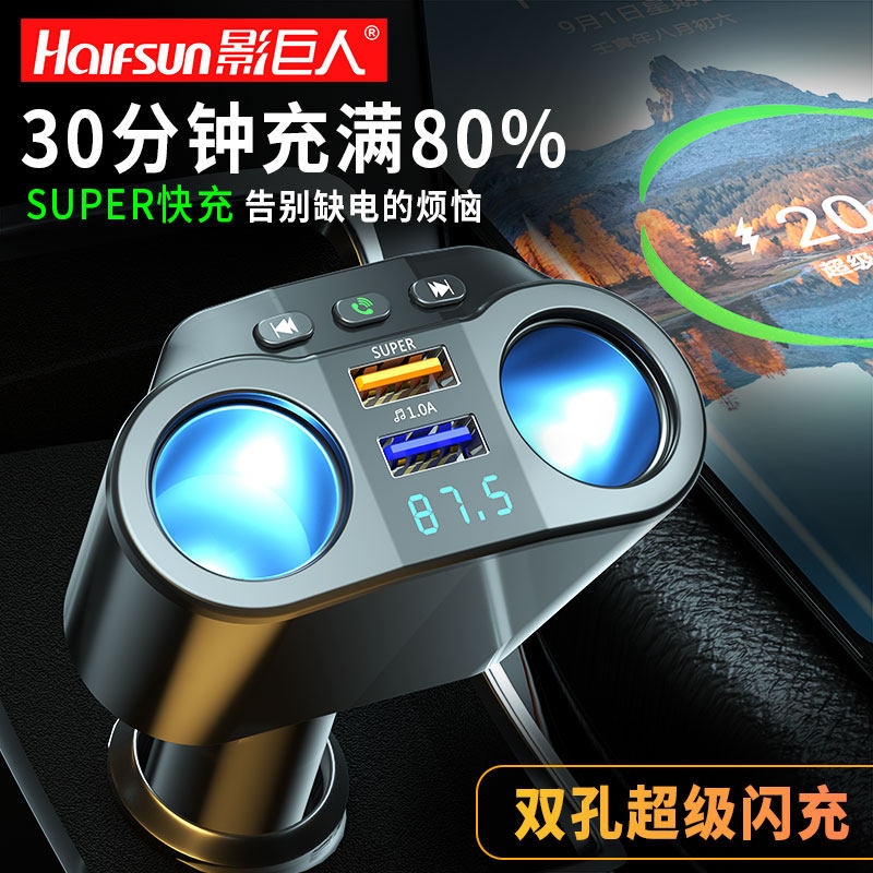 影巨人车载蓝牙充电器mp3蓝牙接收器听歌点烟器一拖二超级快闪充